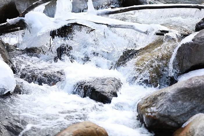 熠熠闪光的漫山银白雾凇,叮咚叮咚作响的溪涧流水,厄尔娜沟在徒友们眼中就是一片秘密森林,神秘安静又充满无限惊喜。