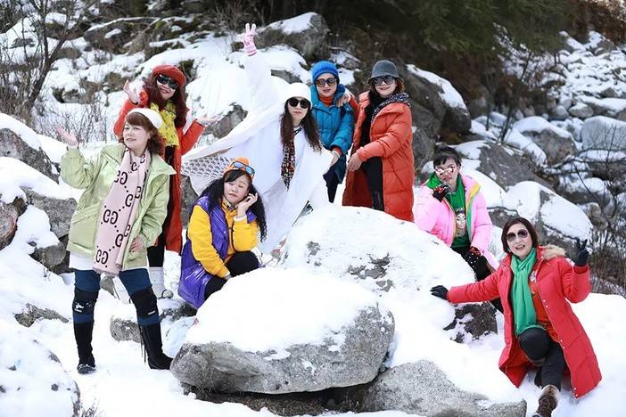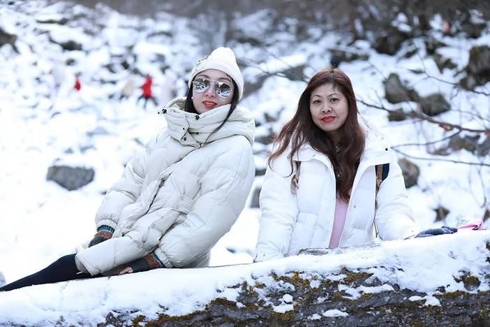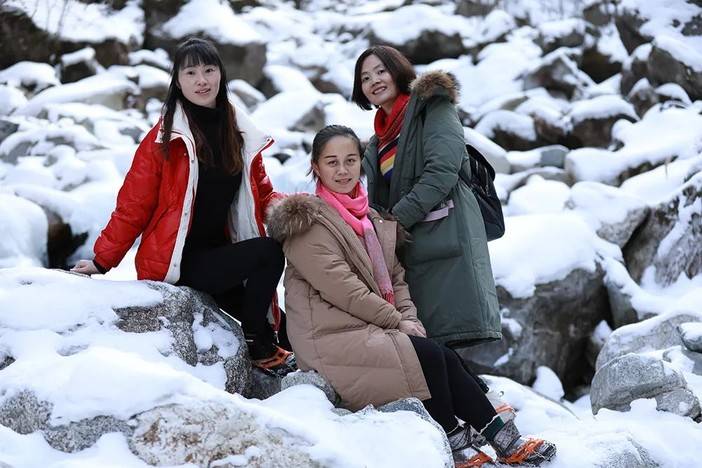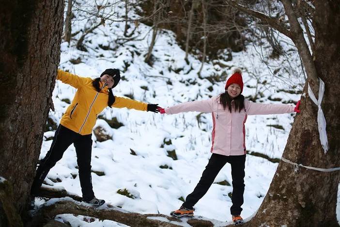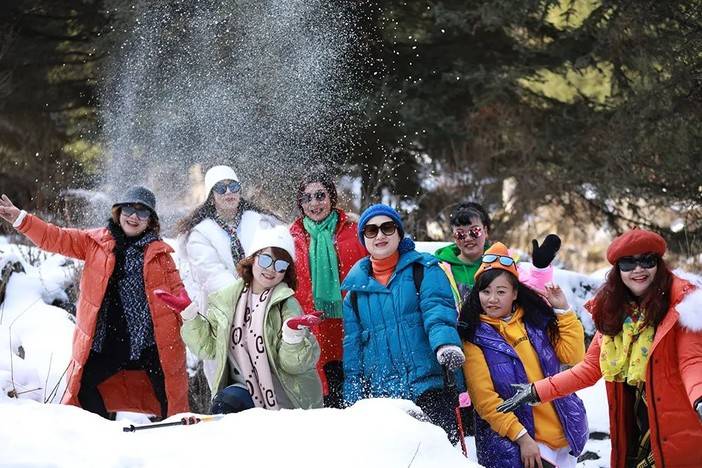 琼花满树、恍入冰境,不知人世复在何处,踏雪而行,徒友们在咯吱声中体验冰雪奇缘。