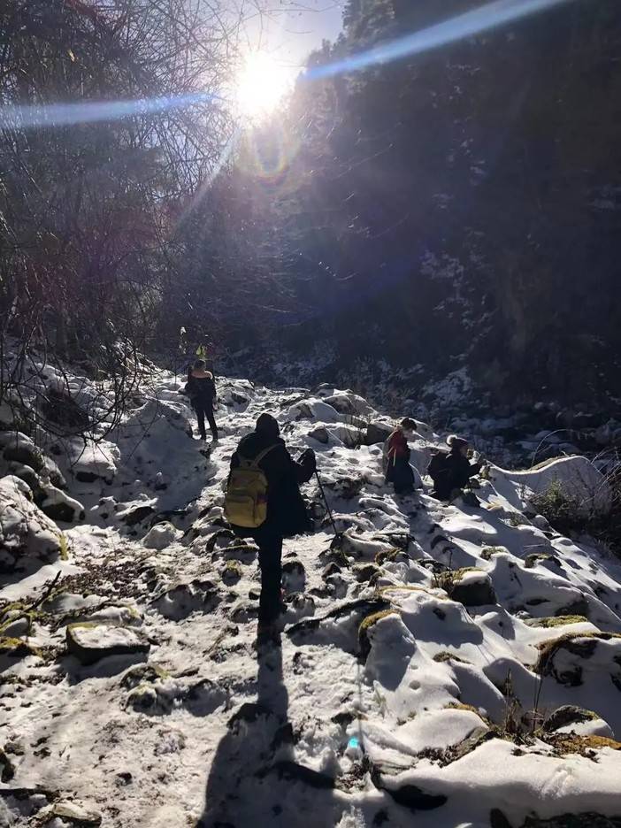 冬天到来,纷纷扬扬的雪花飘落在厄尔娜沟。12.27、12.30蜀道户外行的徒友们来到这里,整个厄尔娜沟被装点得银装素裹,美不胜收,格外好看。