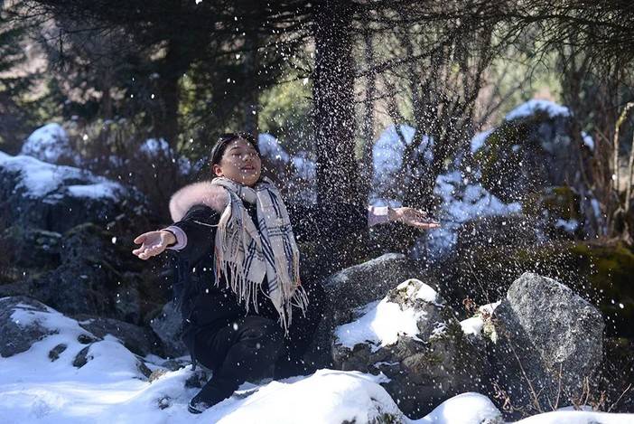 原始森林如诗如画,树木、山峰傲雪相迎,没有一派肃穆有的只是山间雪景的婉约和灵动。