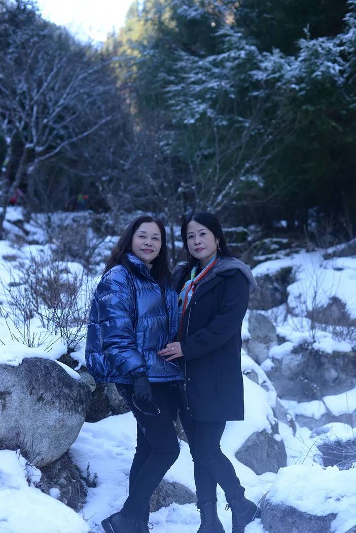 放眼望去山顶云雾缭绕,树林被冰雪覆盖群山银装素裹,心情好不畅快。