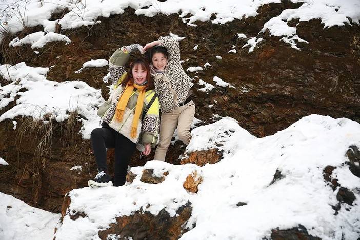 薄冰覆盖的溪流,涓涓细流结成千姿百态的冰挂好似细细的琴弦演奏太阳湾专属的冬日乐章。