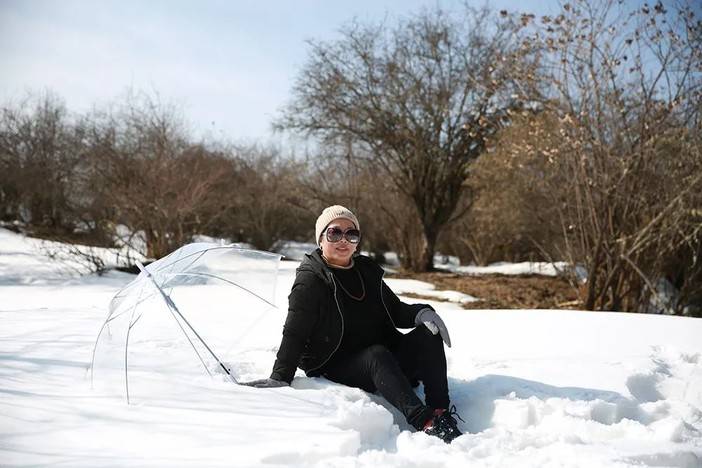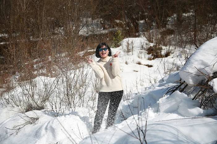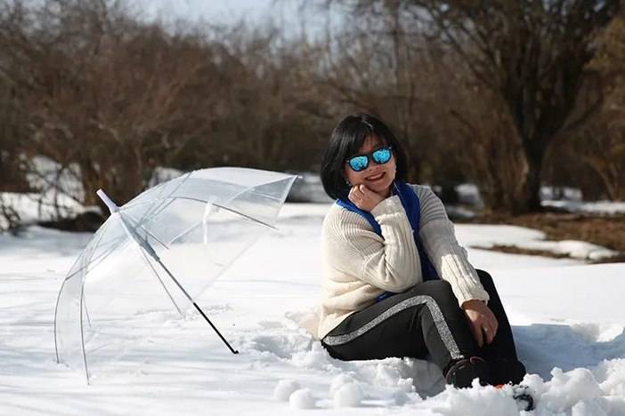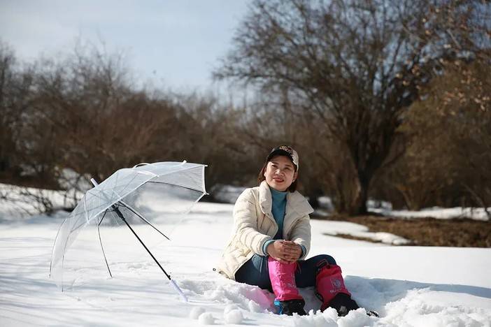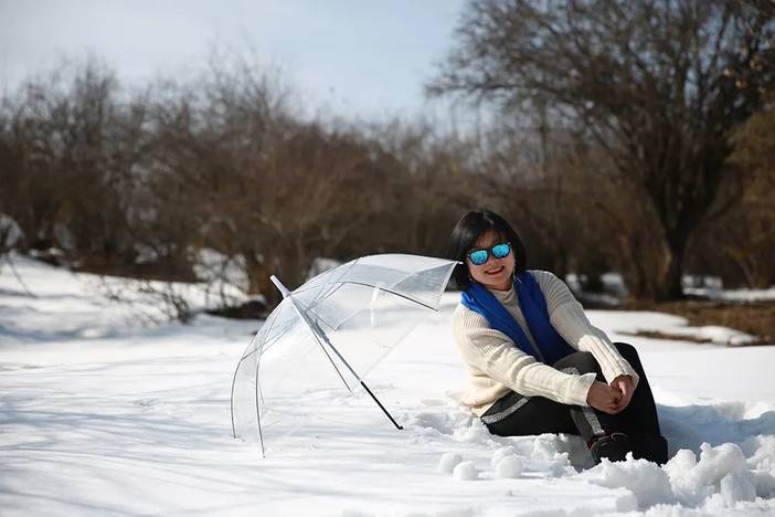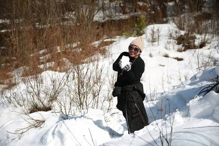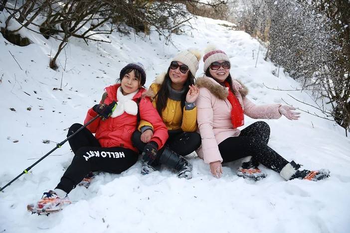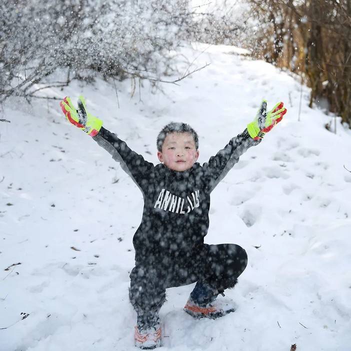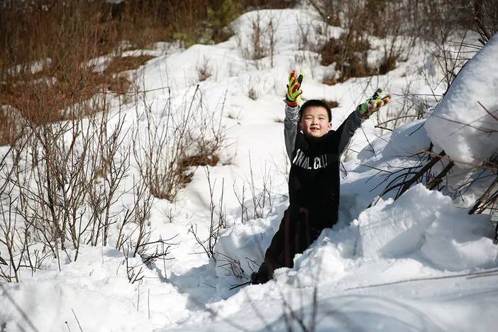 在这个大自然恩赐的天然乐园中,我们嬉笑打闹,雪堆厚厚的、软软的、白白的,恨不得整个人都扎进雪中~