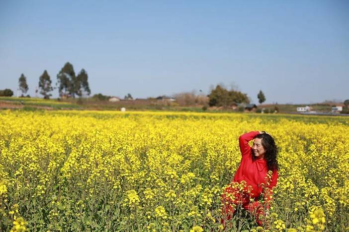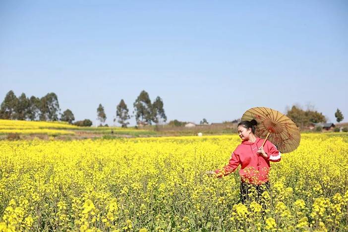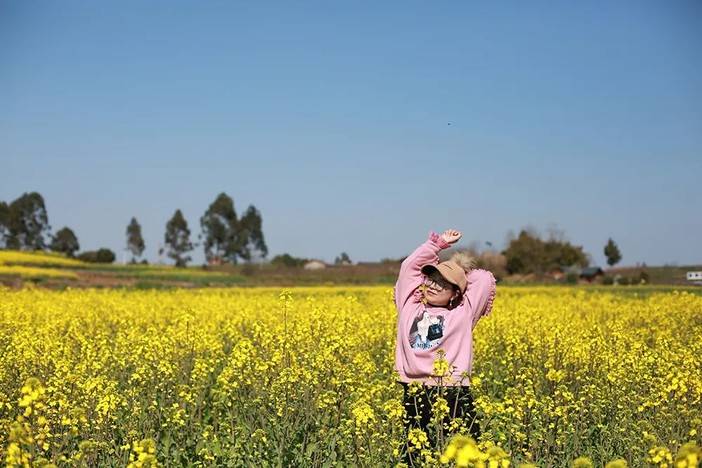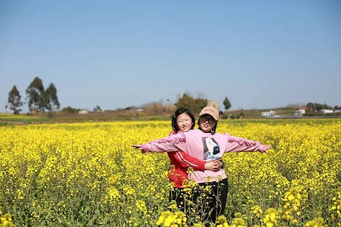 初春金堂,一片片耀眼的油菜花错落有致地点缀在浅丘之间。大年初五蜀道户外行的徒友们来到这里,在这一片金黄的花海里,肆意的奔跑,敞开怀抱,拥抱春天。