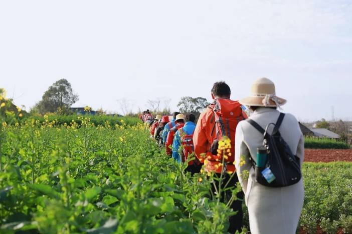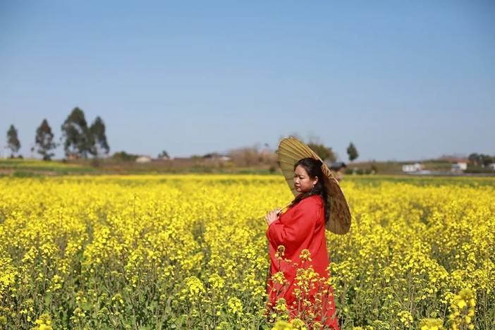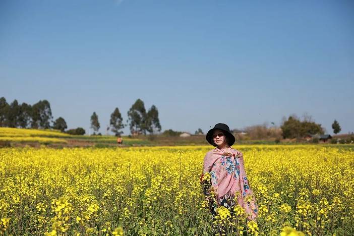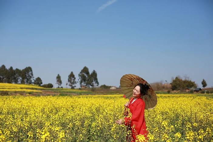 油菜花田里,清新、自由、沁人心脾的香味与热烈、灿烂无言以表的色彩调和成了一把熊熊燃烧的火焰,炙烤着我们向往美景的脚丫。
