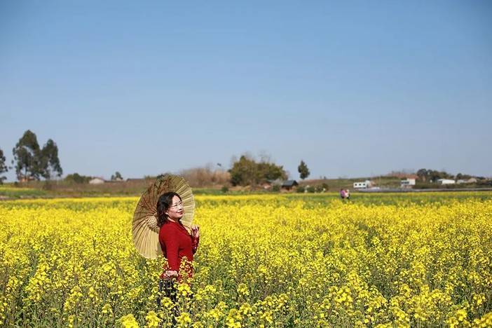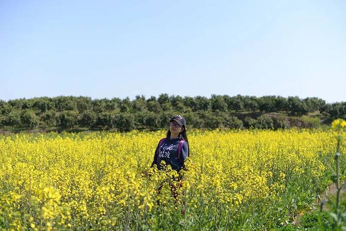 每朵油菜花都跳跃着闪亮的金黄,给人视觉上的冲击,闻一闻这花香,春天就在身旁。