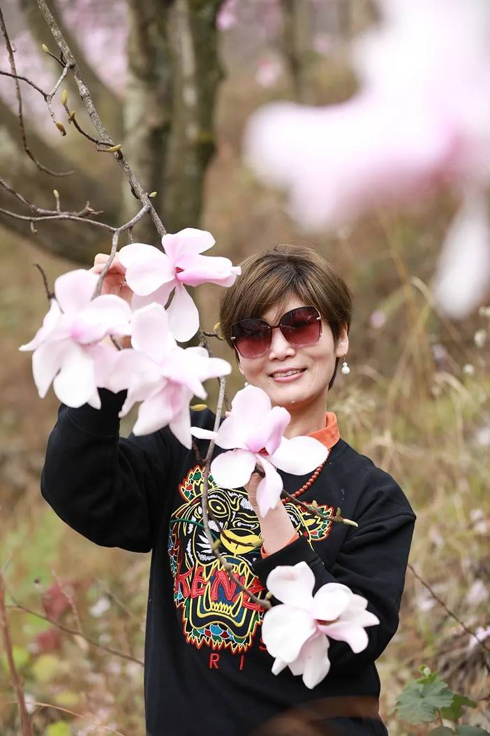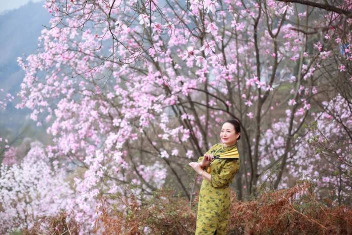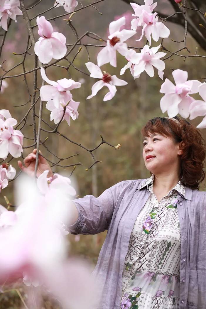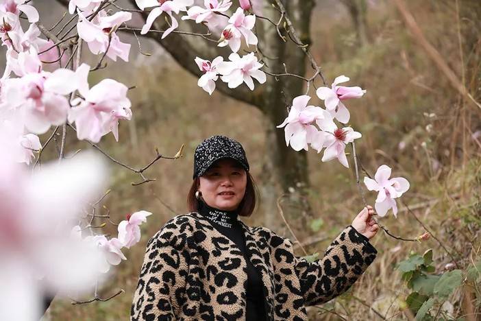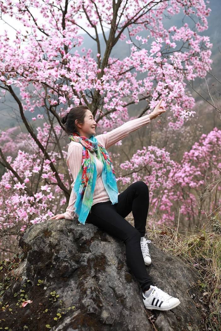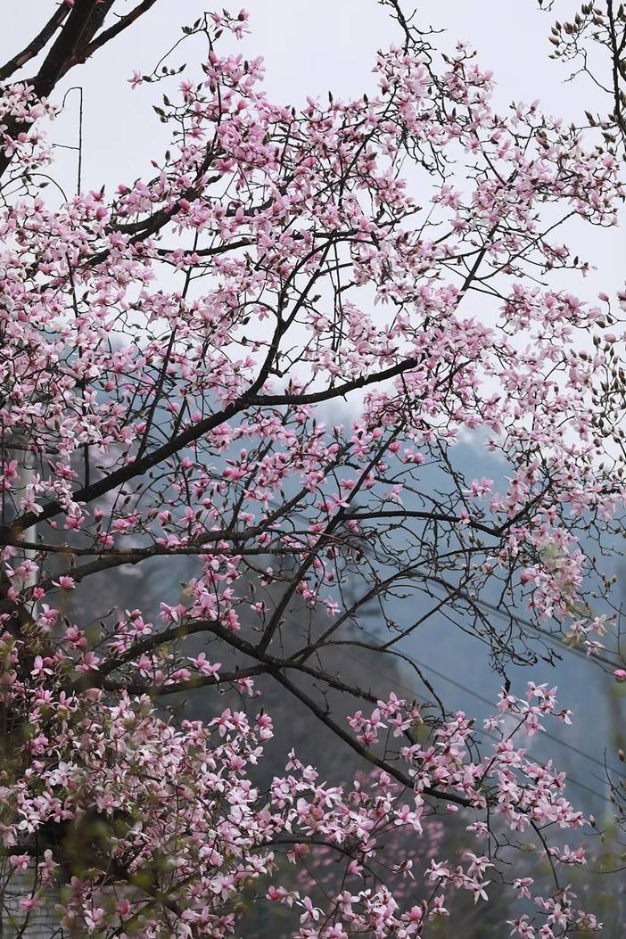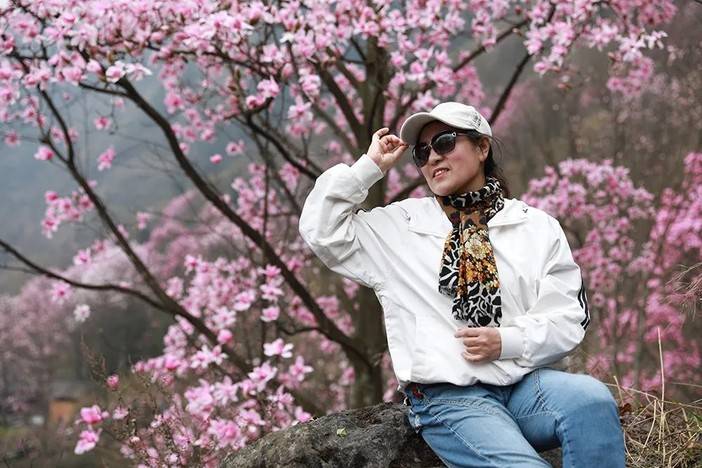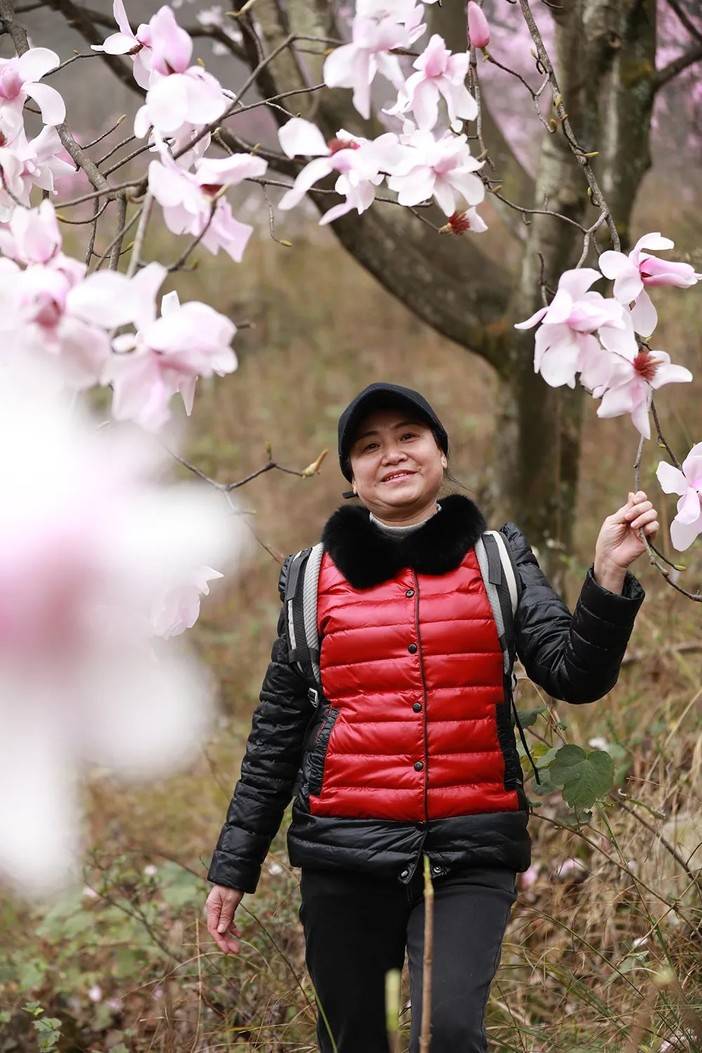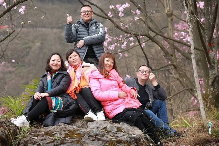 每逢初春,花溪景的辛夷花盛开,花瓣展向四方,粉光明媚,芳香四溢。3.3蜀道户外行的徒友们来到这里,花朵硕大而又繁盛,在温暖的日光照射下,满满地开在枝头。