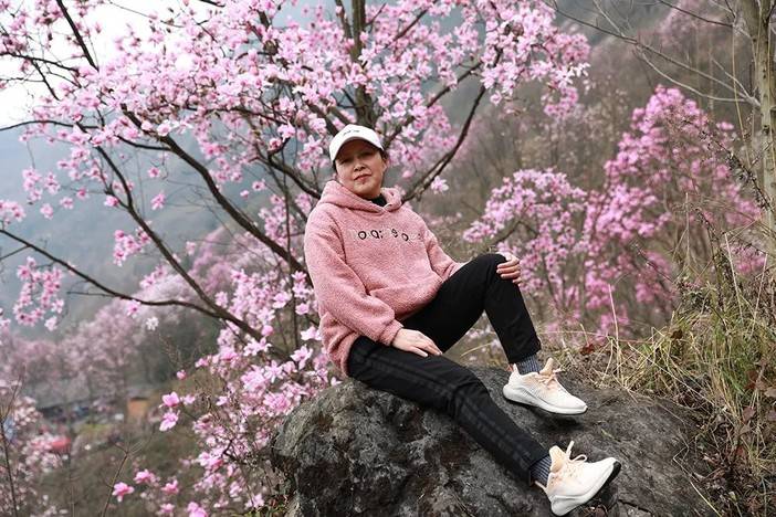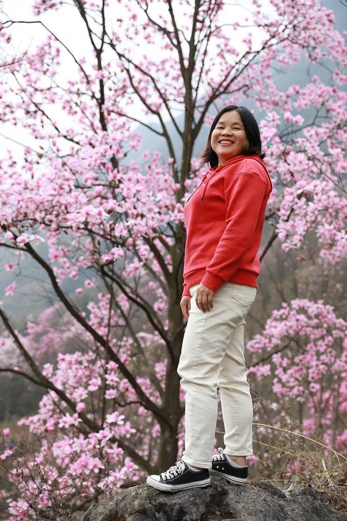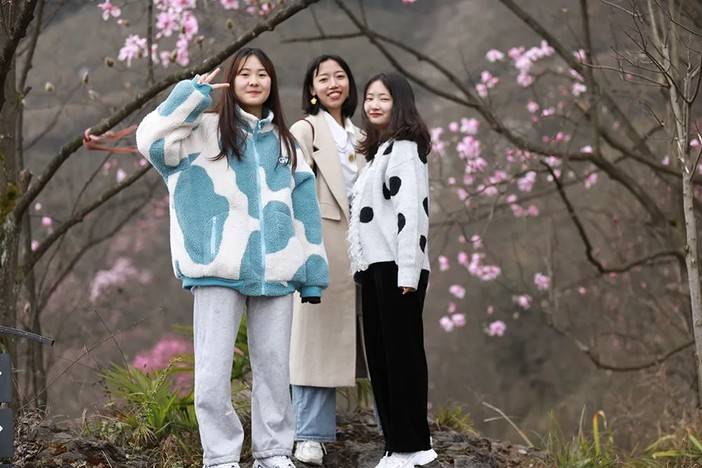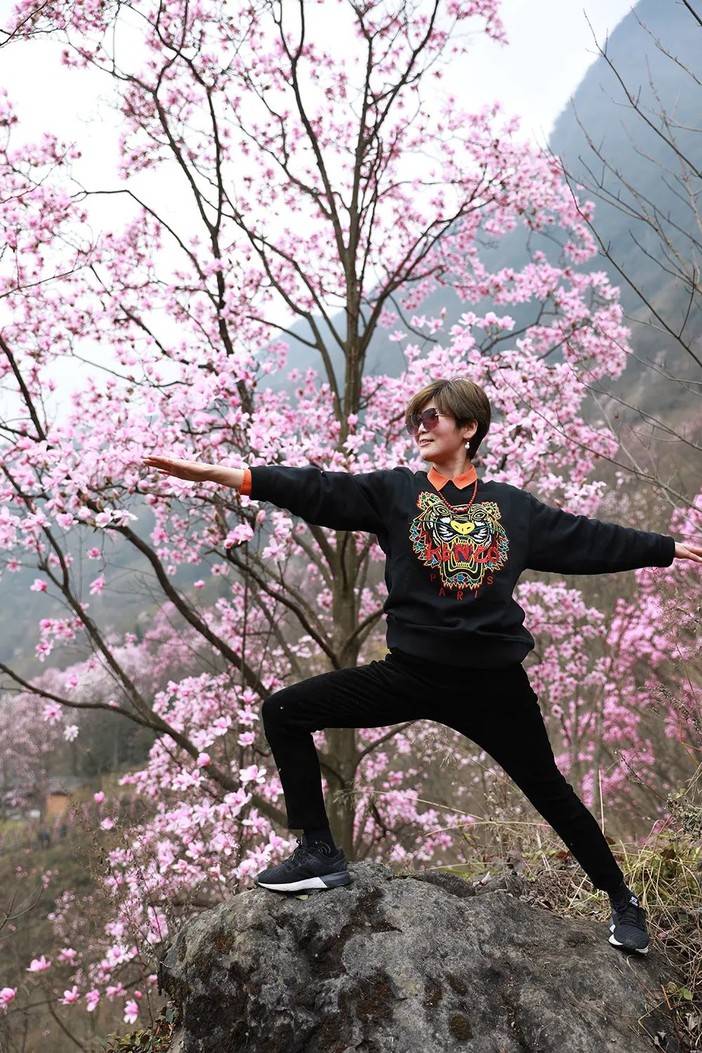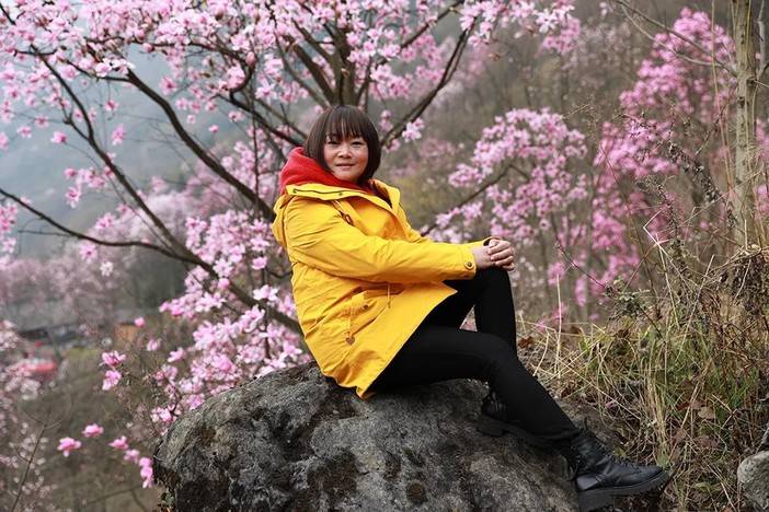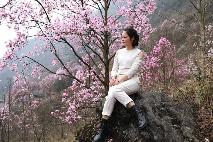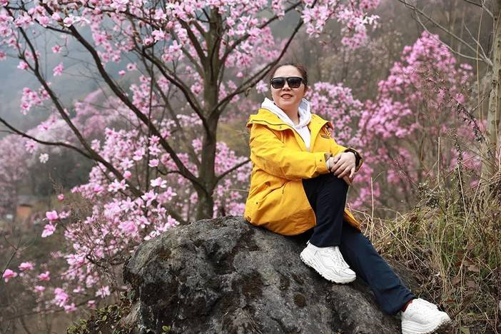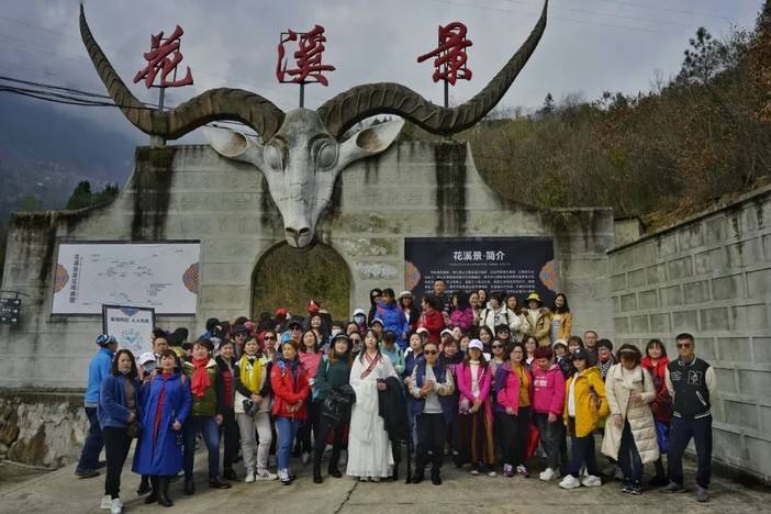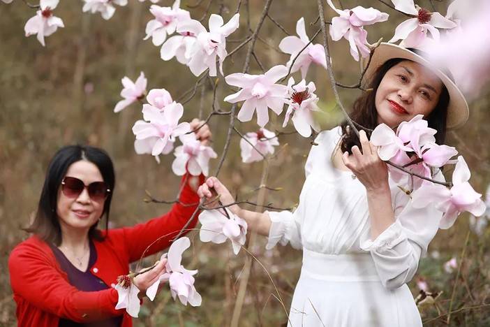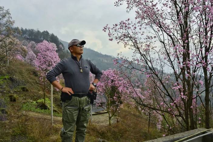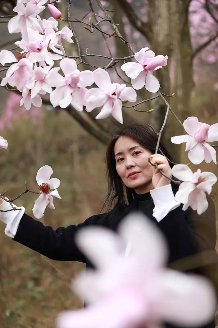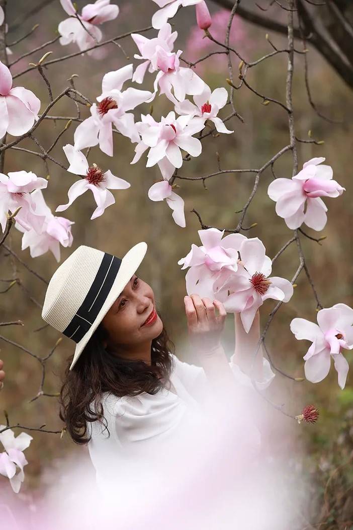 每逢初春,花溪景的辛夷花盛开,花瓣展向四方,粉光明媚,芳香四溢。3.3蜀道户外行的徒友们来到这里,花朵硕大而又繁盛,在温暖的日光照射下,满满地开在枝头。