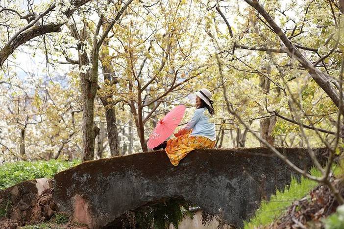 置身于梨花树之间,在草木复苏的大地中漫步,满径飘香,边赏边拍,这才是春游的样子。