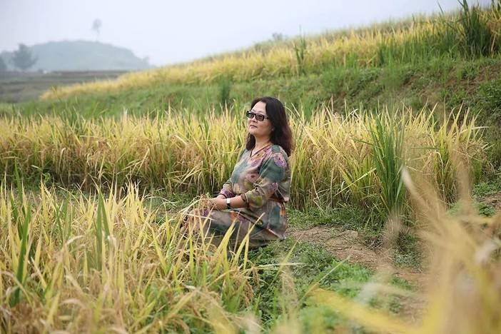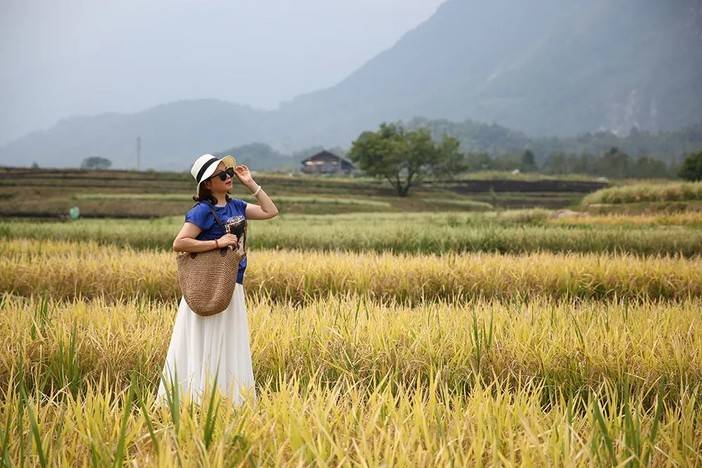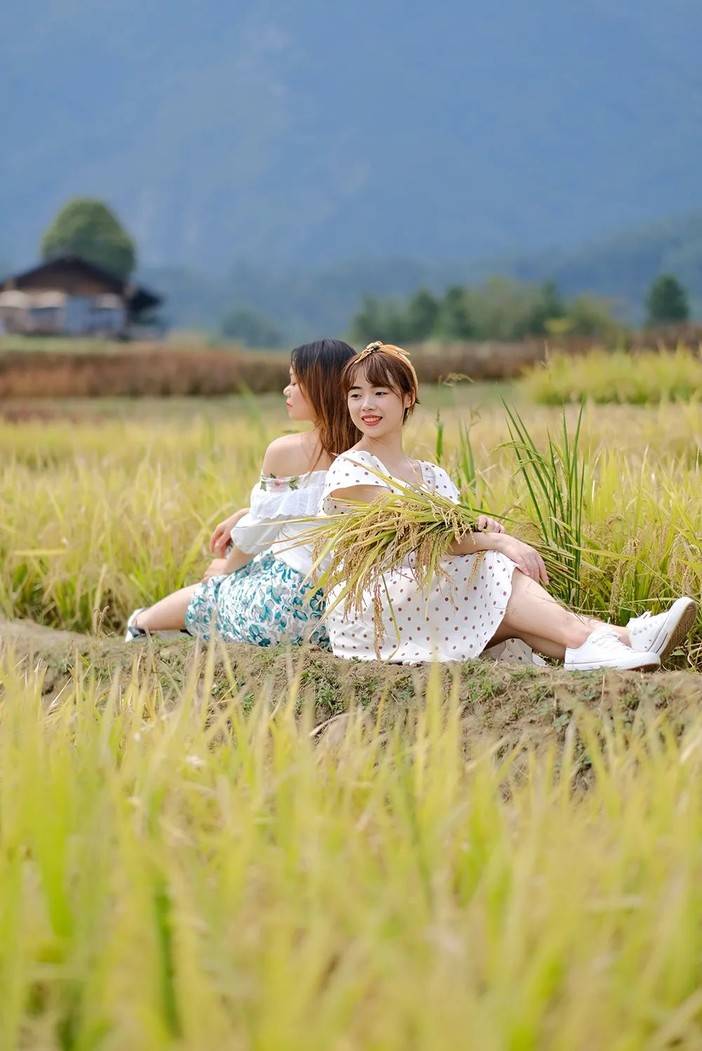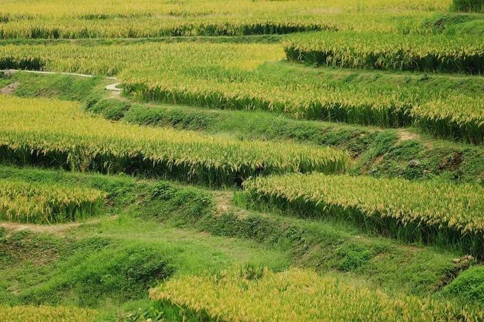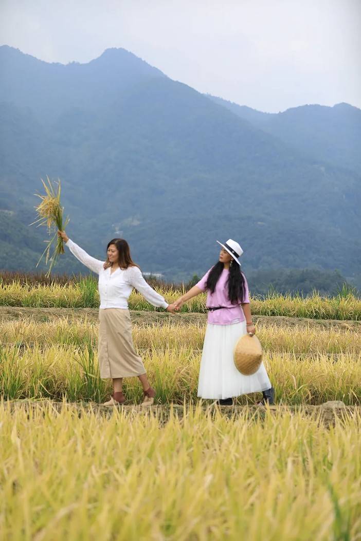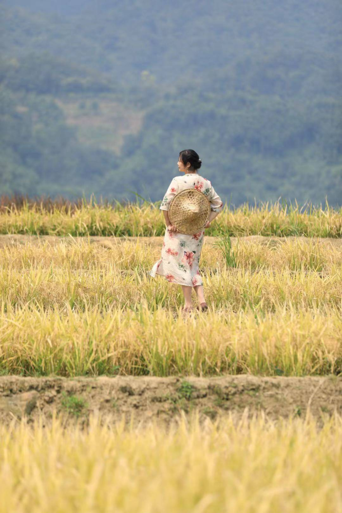 稻田从远处山脚出发,不规则的自然肌理向下延伸而来,走进稻田,瞬间能感受到慵懒时光的快感。