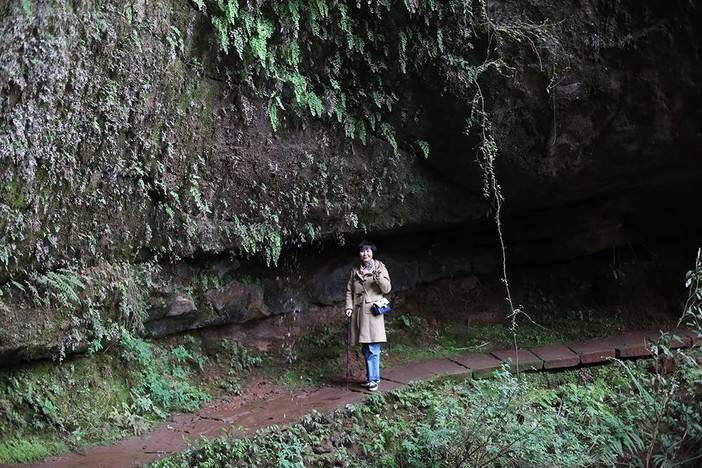 药师岩则在翠竹掩映间。拾阶而上,耳畔不时传来清脆的鸟鸣,清新湿润的空气迎面袭来,顿觉神清气爽,有一种久在樊笼里,复得返自然的意境。
