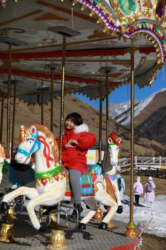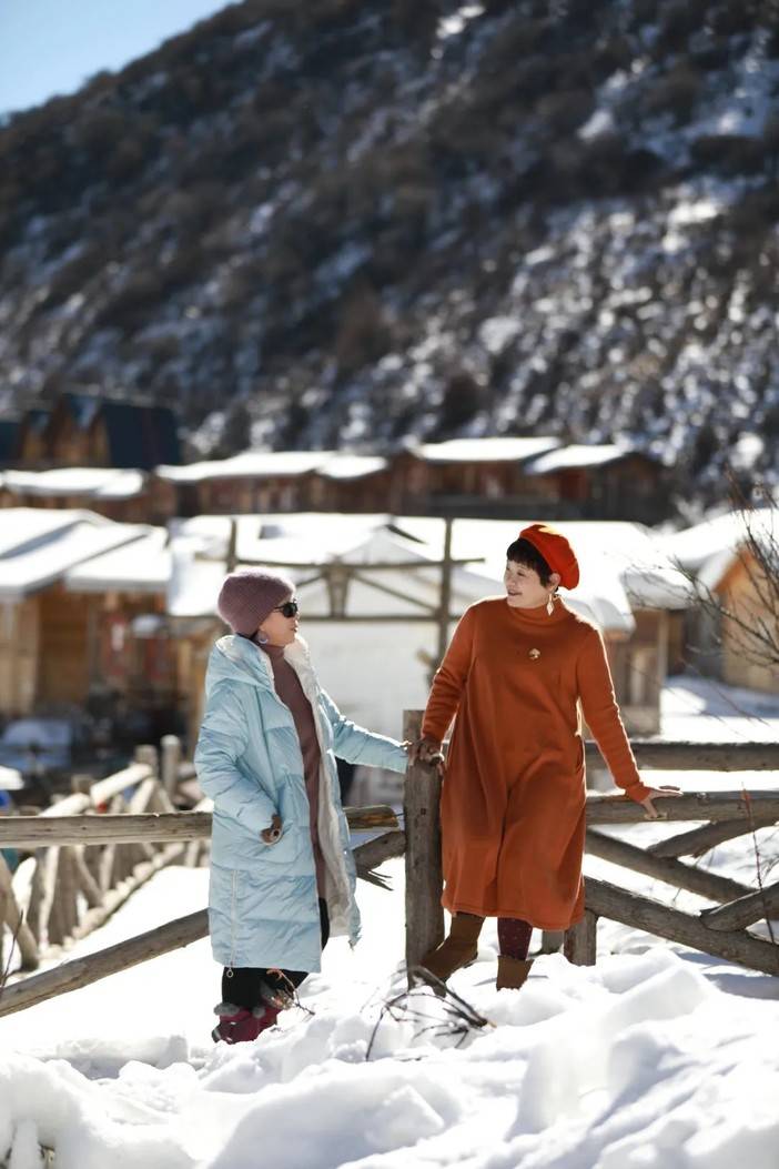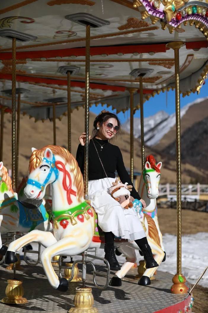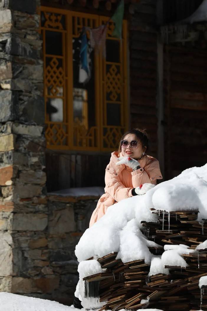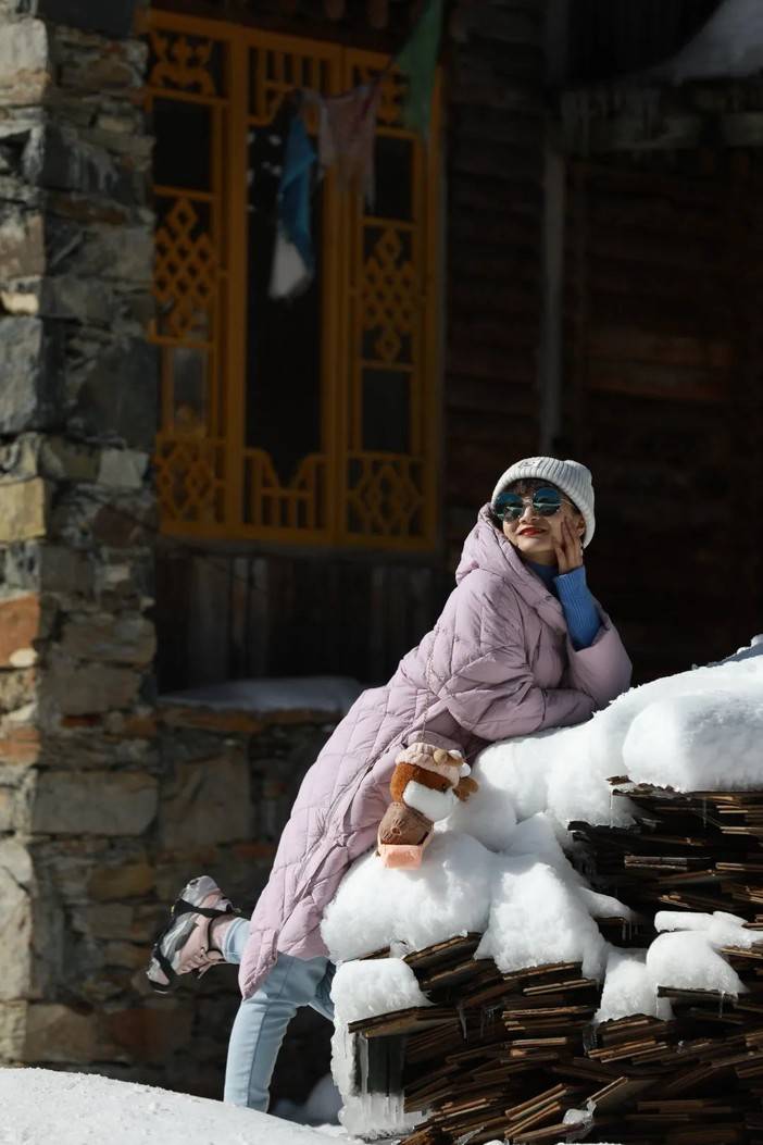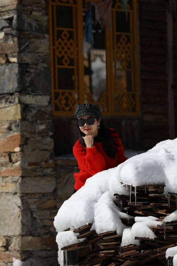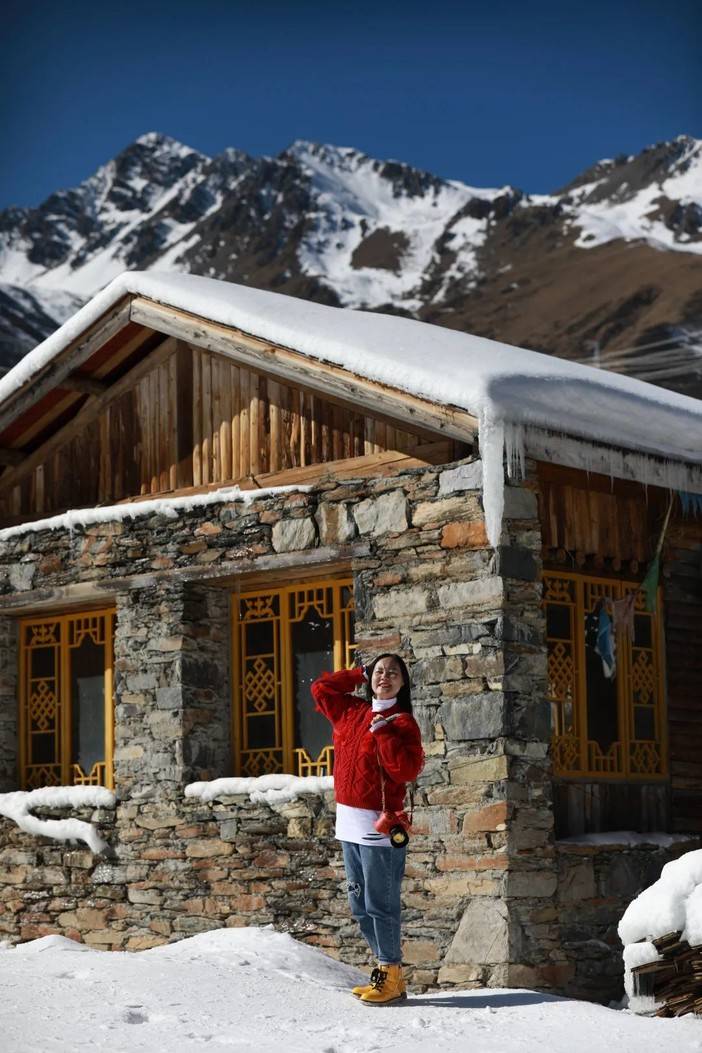 远处的雪山,纯净的蓝天,都像极了一个冰雪的童话世界。这里童话般浪漫风情,在雪的点缀下更显多姿。
