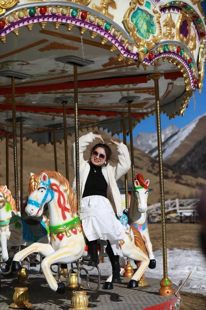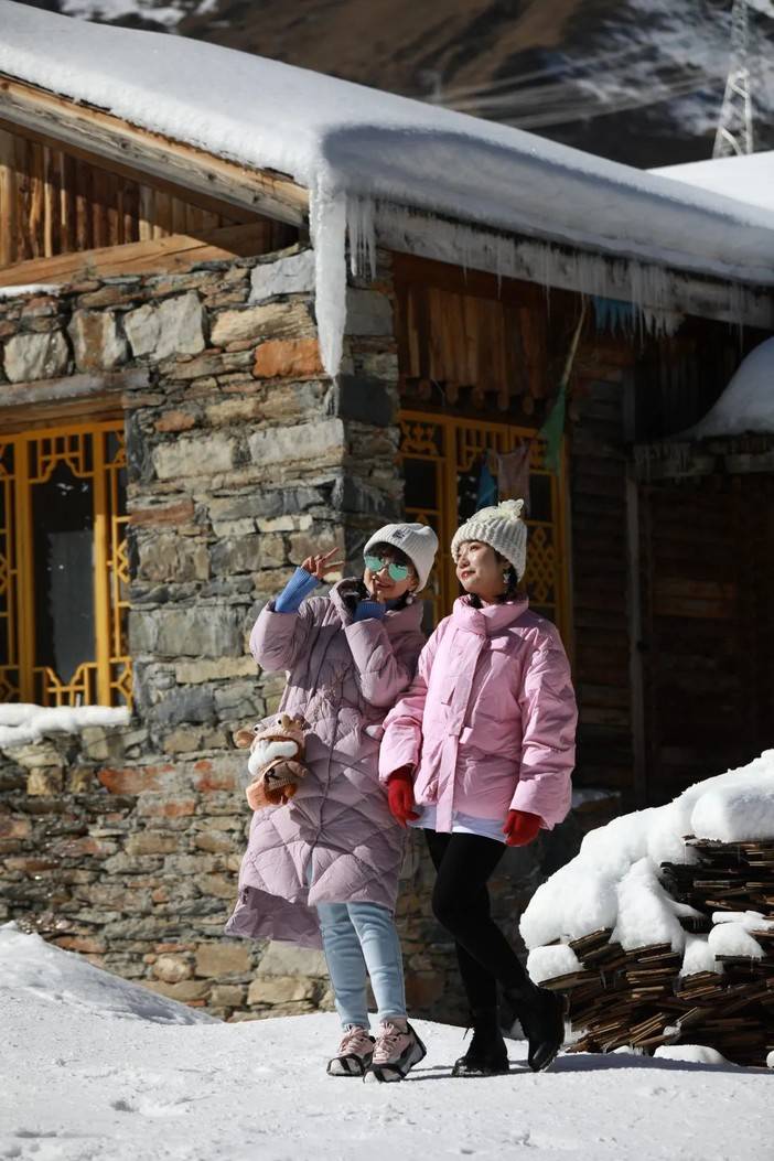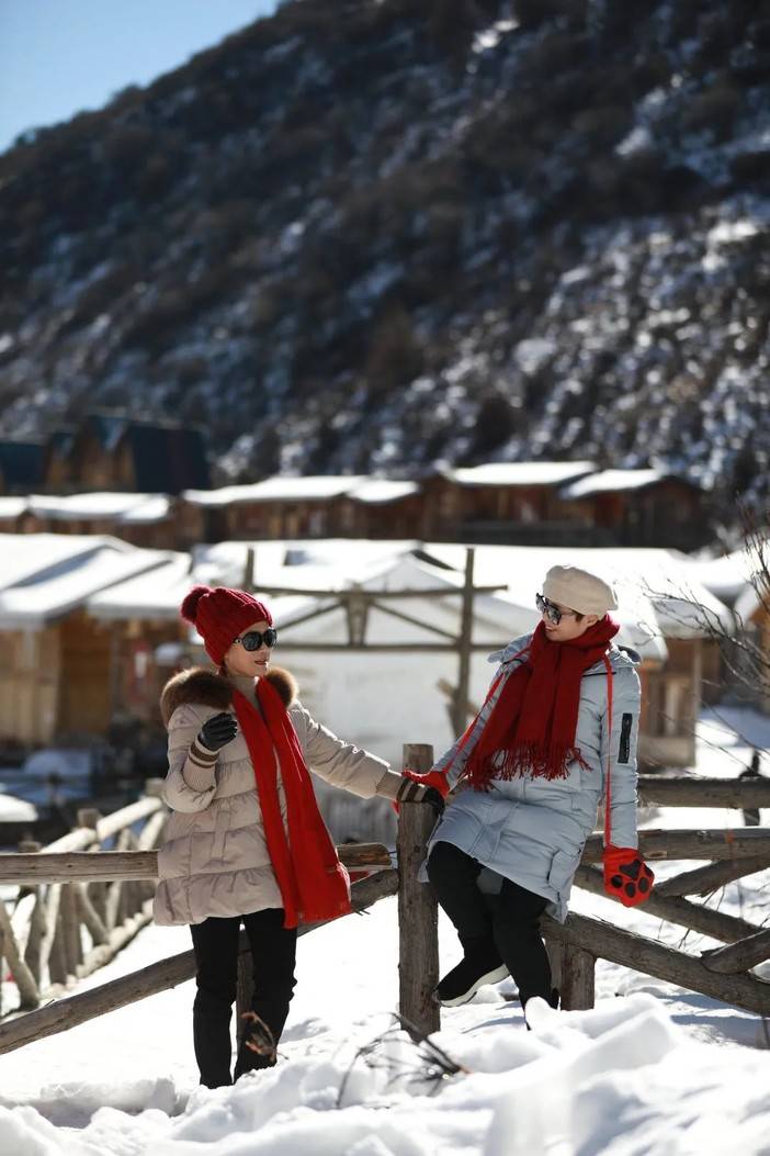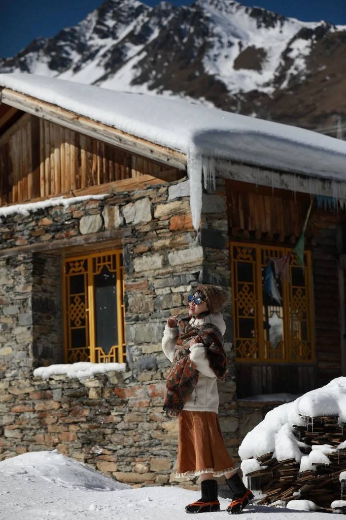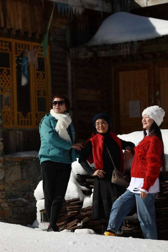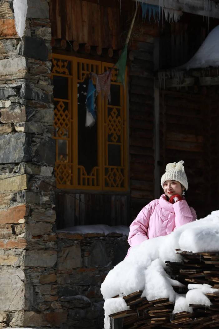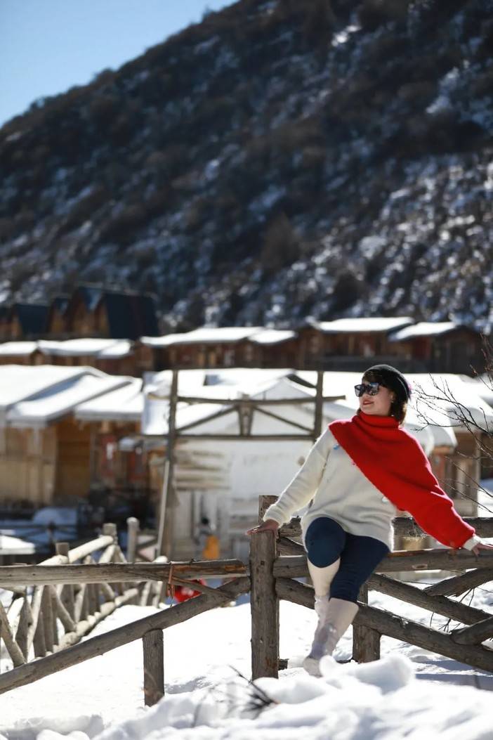 远处的雪山,纯净的蓝天,都像极了一个冰雪的童话世界。这里童话般浪漫风情,在雪的点缀下更显多姿。