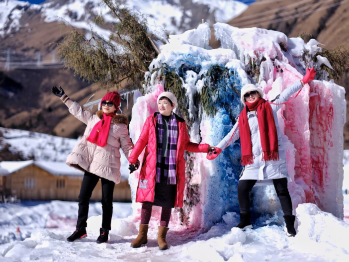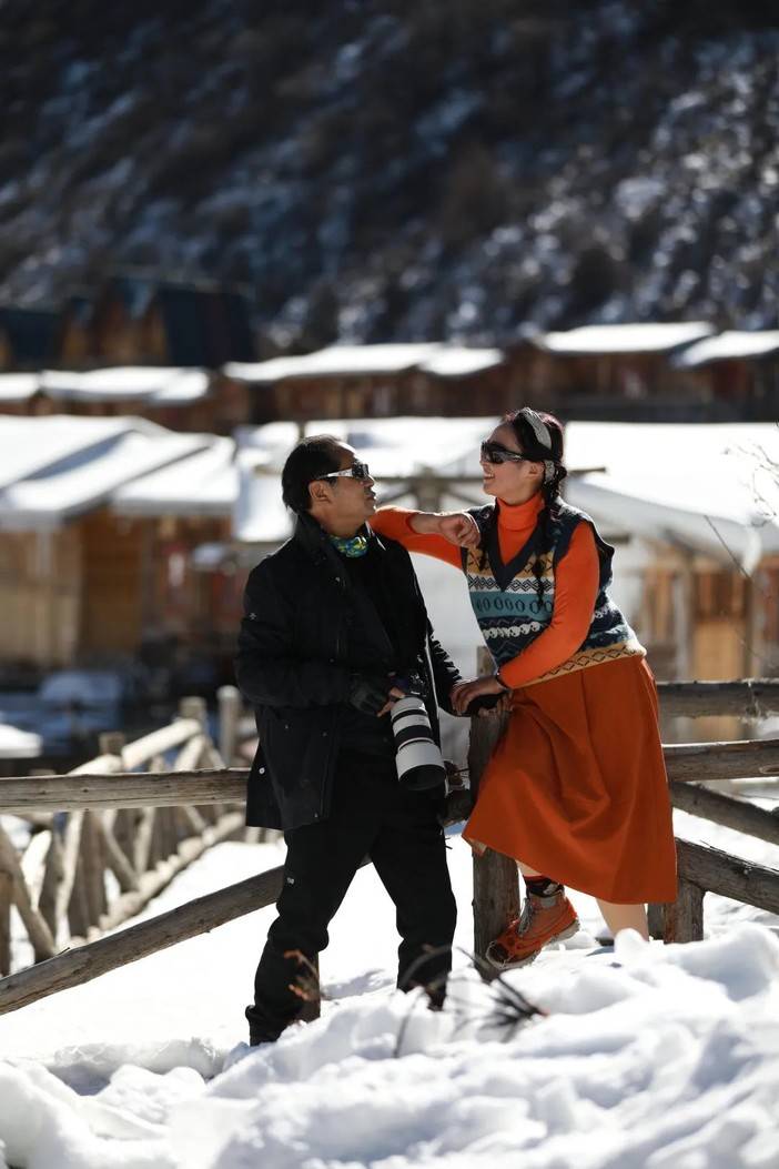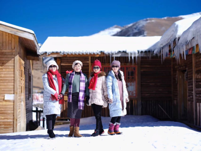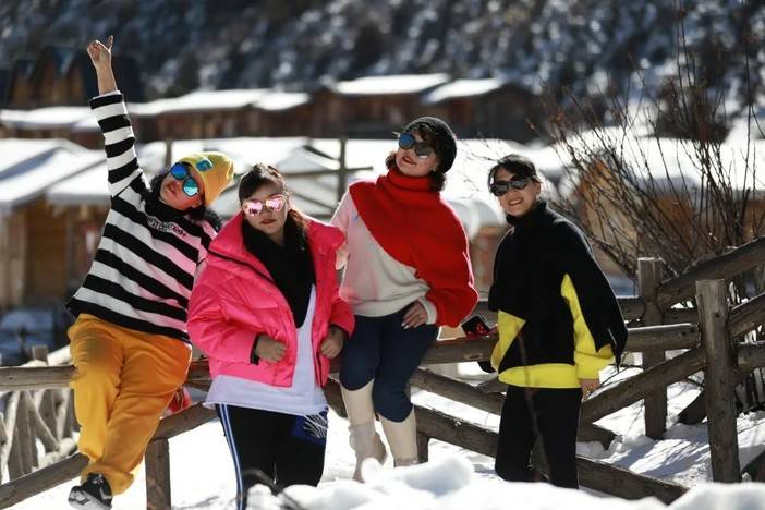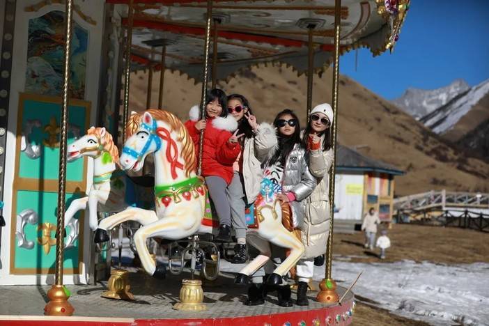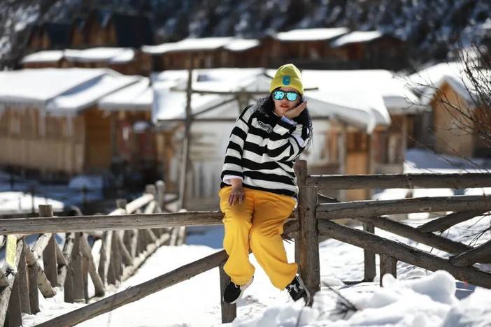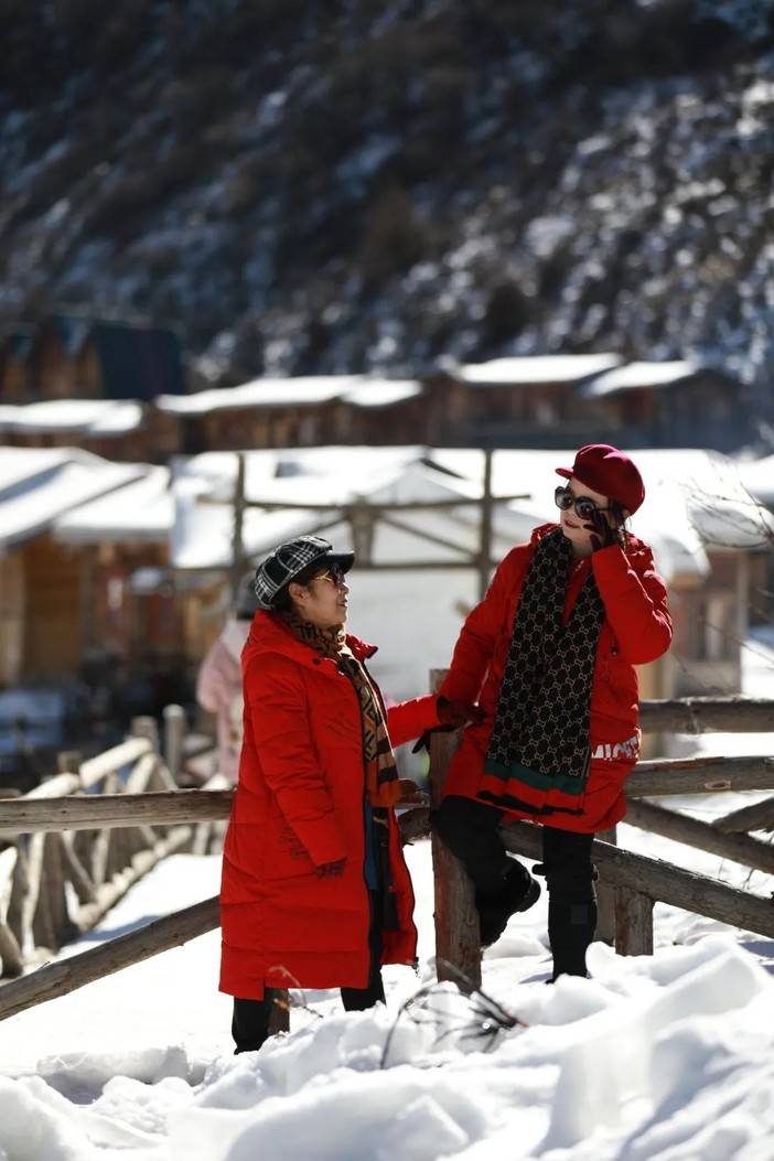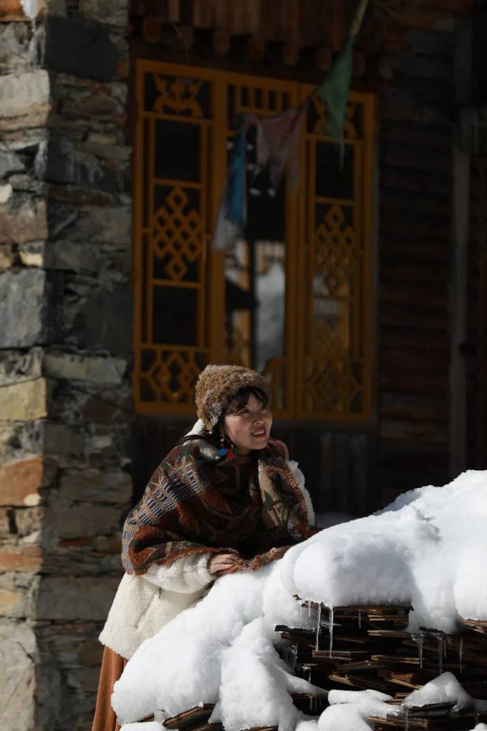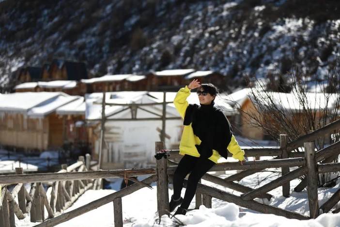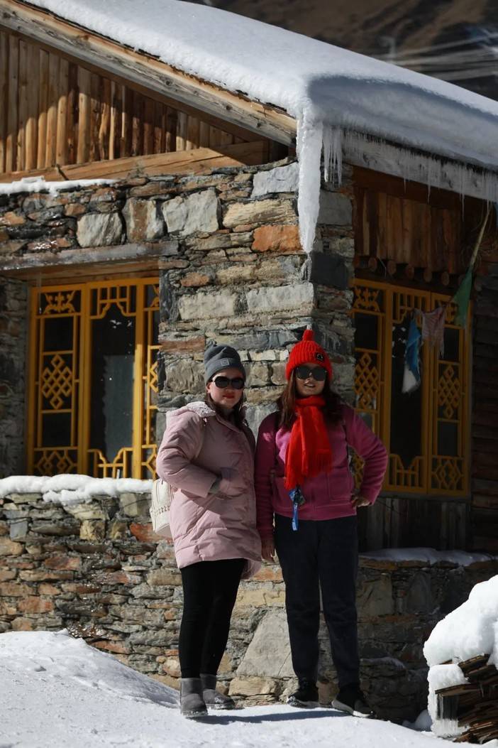 远处的雪山,纯净的蓝天,都像极了一个冰雪的童话世界。这里童话般浪漫风情,在雪的点缀下更显多姿。