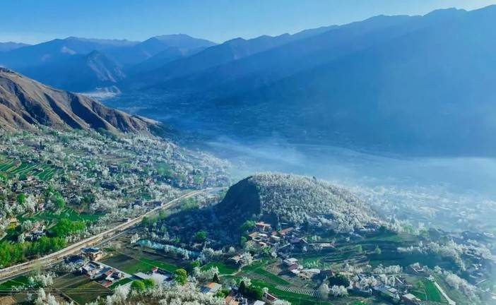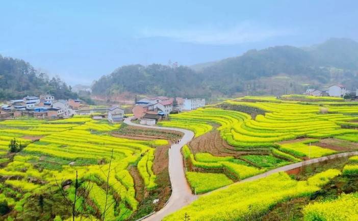 梅花、桃花、梨花、油菜花、杜鹃花等朵朵绽放,乡间的梯田层层叠叠,老村散落其间,春日徒步,仿佛是走入了世外桃源一般,充满画面感。