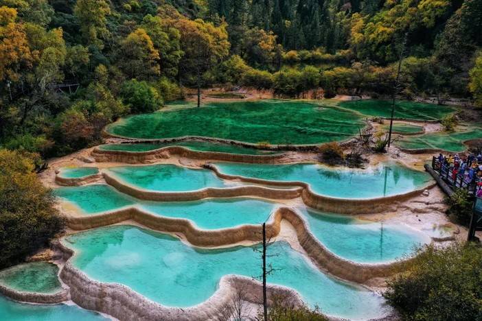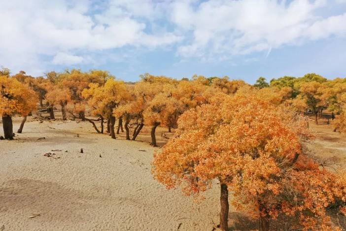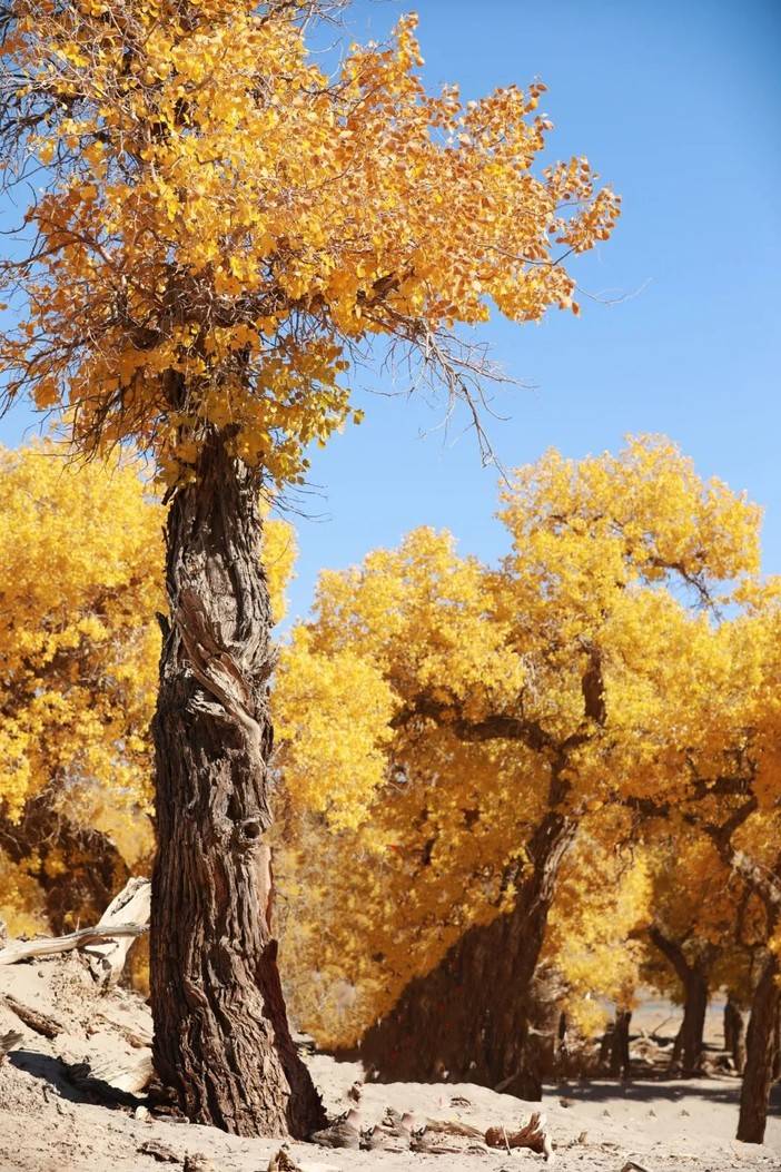 秋日是一场视觉盛宴。无垠的草原、弯弯的小溪、金黄的柏杨,清新自然的色彩拥裹着秋日的一切,美得让人心醉。