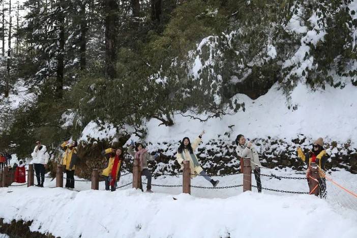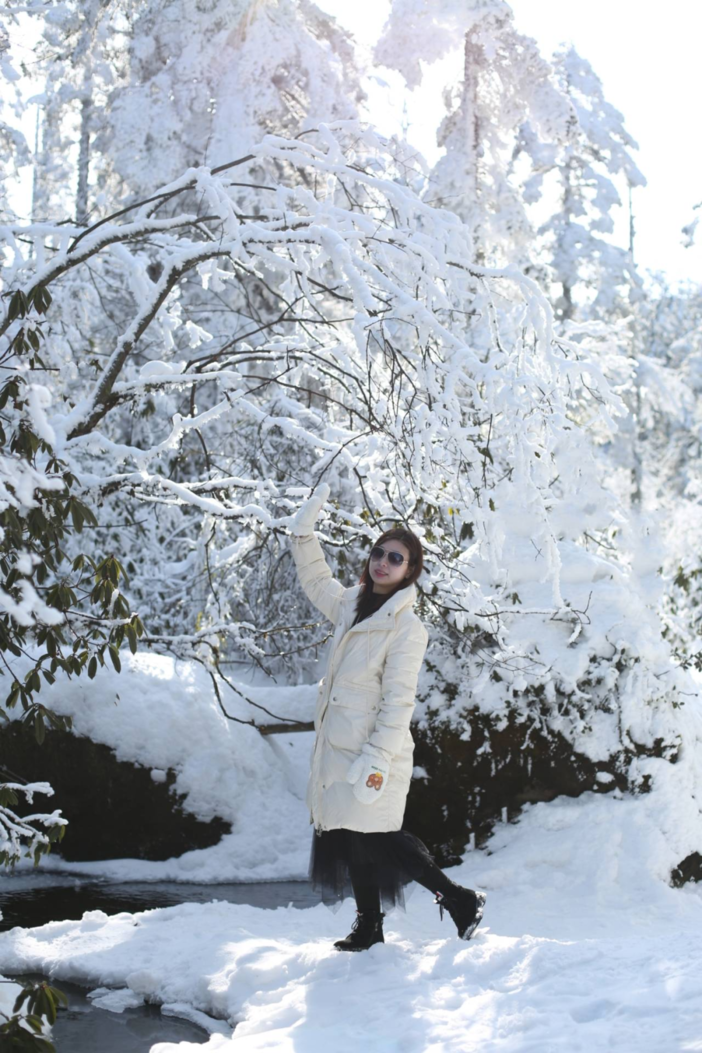 踏雪寻欢,窸窸窣窣的落雪声也很好听。踏雪声与踩上枝叶的声音交杂,美丽的冬日雪景惊艳了南方的冬日。