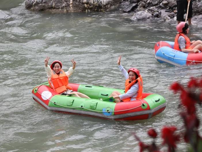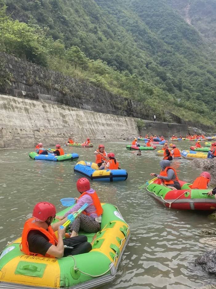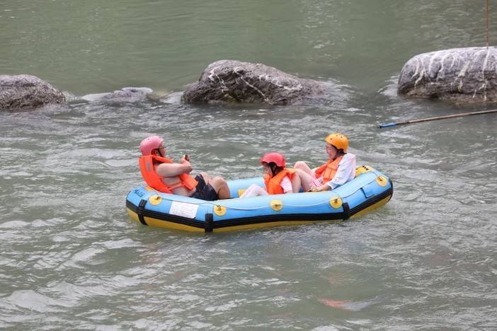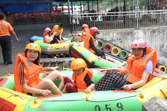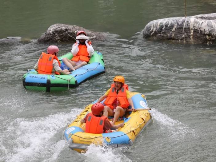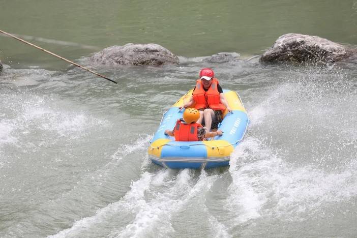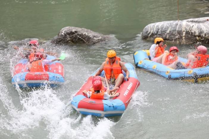 借着漂流释放燥热的心跳,感受水珠在空中跳跃,追寻内心的自由,山谷里回荡着孩子们的欢声笑语,在此刻大人小孩都收获了同等的快乐。