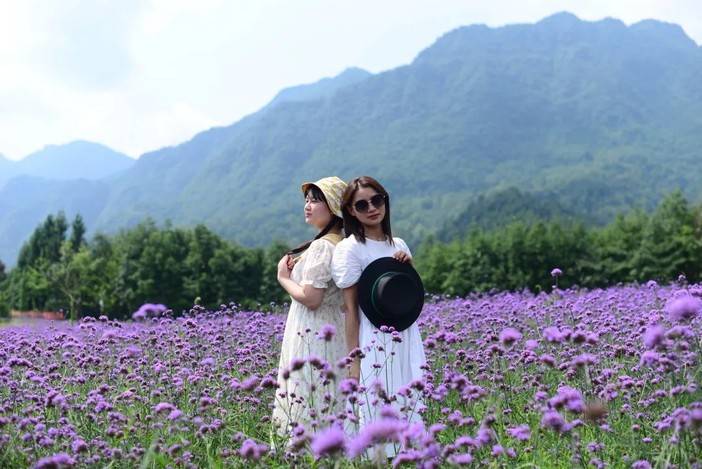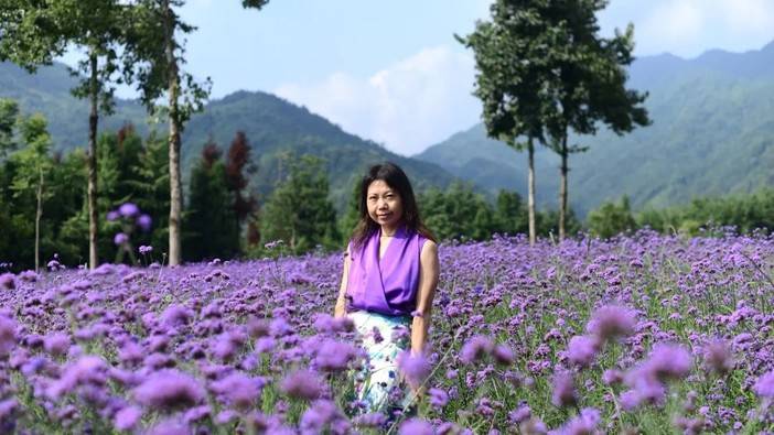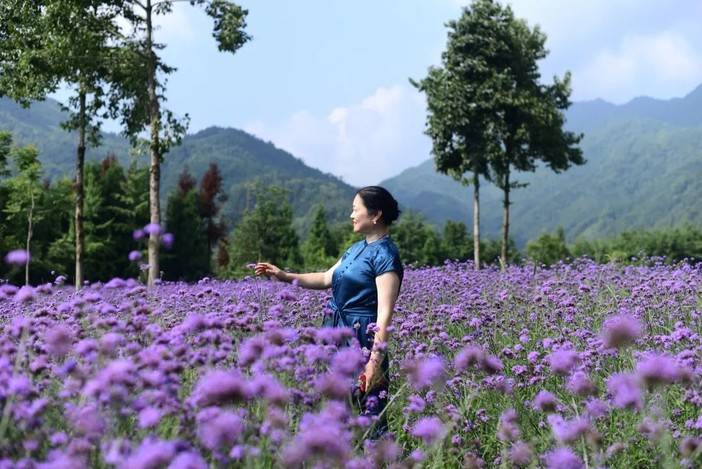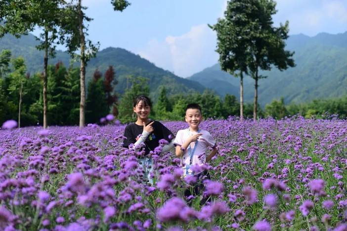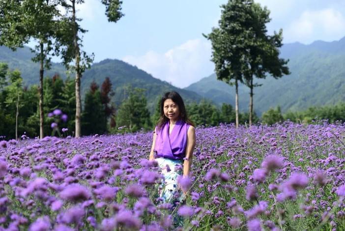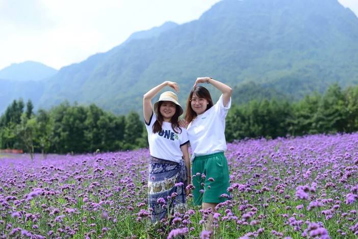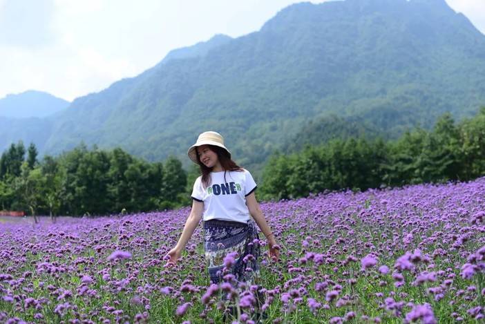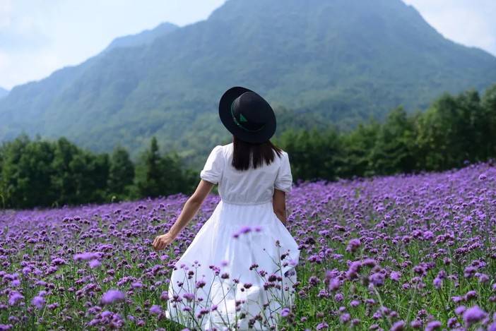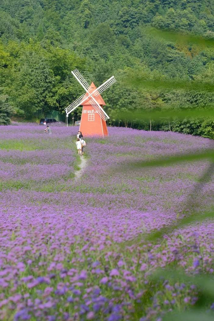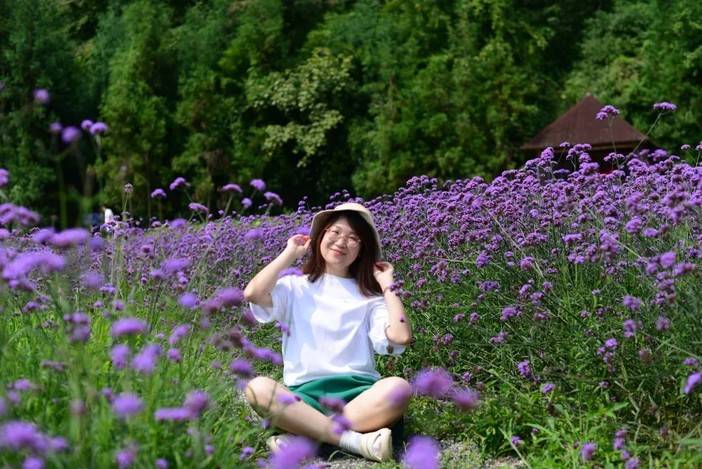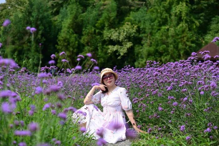 星星点点的马鞭草连成一片,远远望去就像梦幻的薰衣草花海,漫步其中,就仿佛置身浪漫的普罗旺斯。