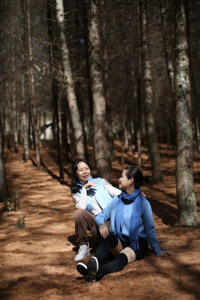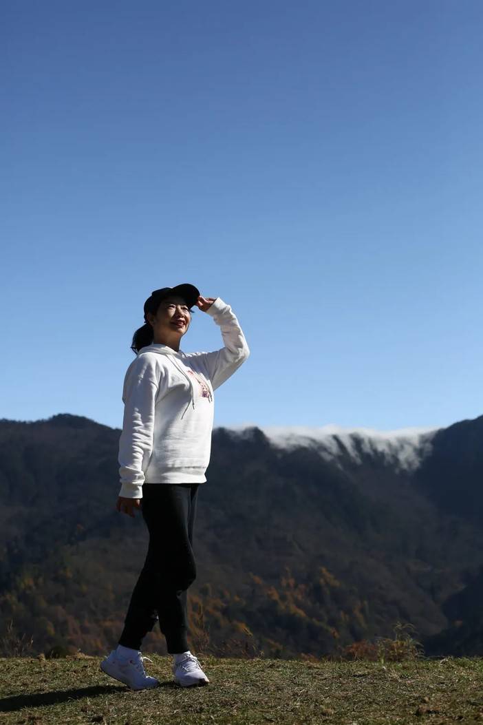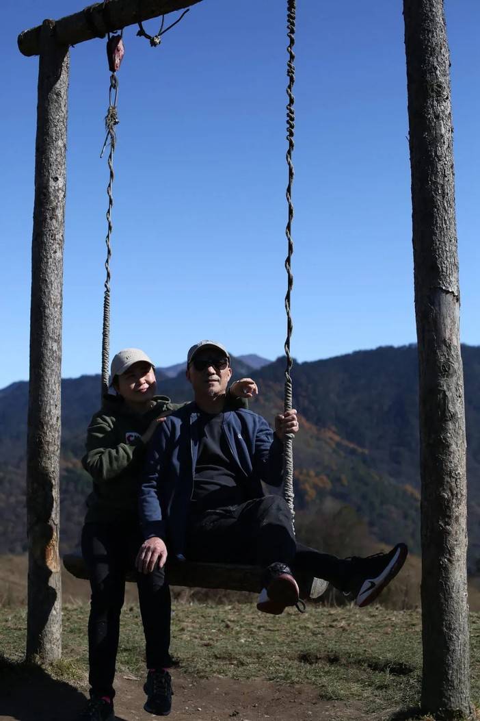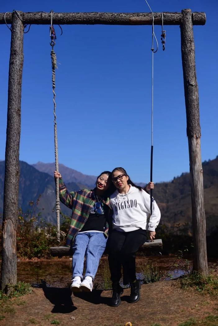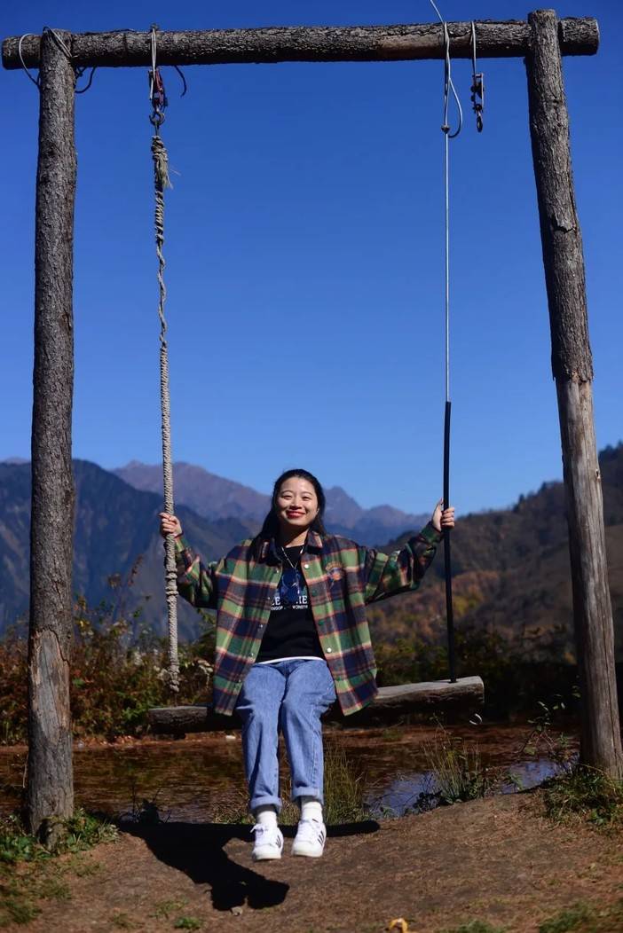 当彩林做了背景,山河皆在脚下,头上的蓝天也变得触手可及,在这高山观景台的秋千上,留下一一个个美丽的笑颜。