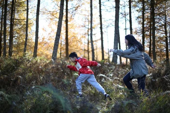 奔跑在彩林之间,偶尔跑出来的“贪玩”让人身心轻盈,在自然的怀抱中卸下一切防备,肆意地放开自己,拥抱最本真的玩心,是一种难得的体验。