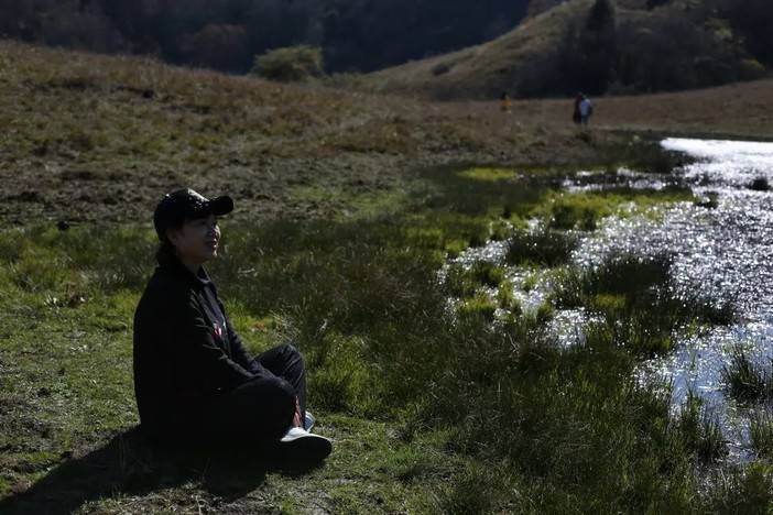 穿行在山林海子间,遇见一场“星河”,于高山中开出一片天地,囊括万物造出闪烁的星星点点,岸上的秋色都是迷蒙的花色。