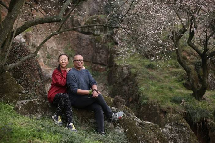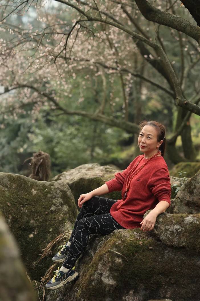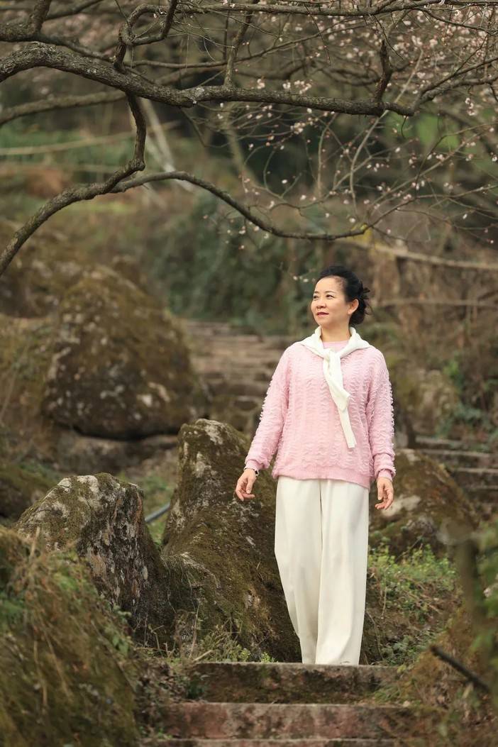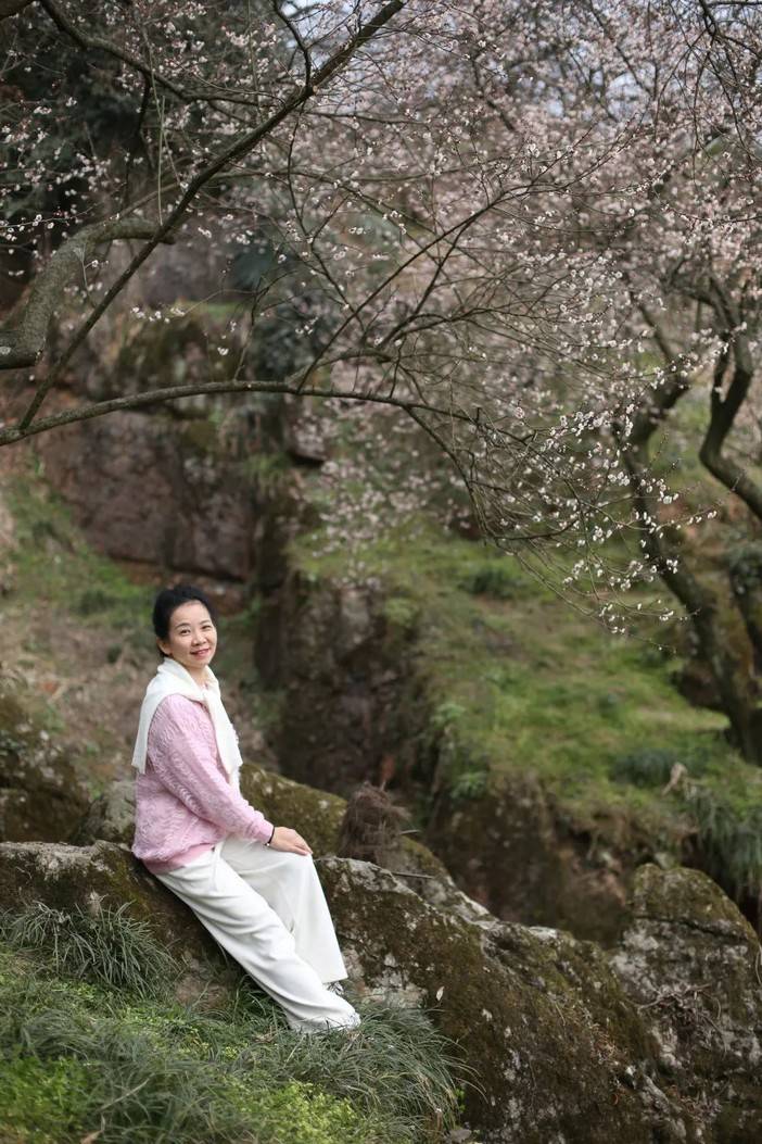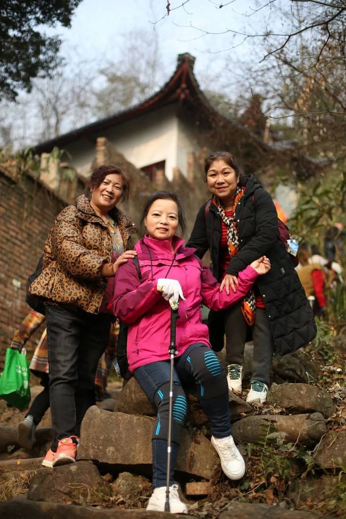 微风拂过,有星点梅花往下落。古老的山路,裹着青苔的山石引着人向上攀爬,花香铺满来路,欢声笑语划破空气回荡在半山腰。