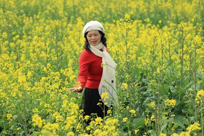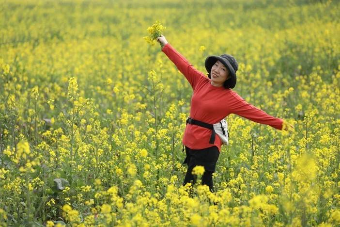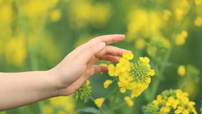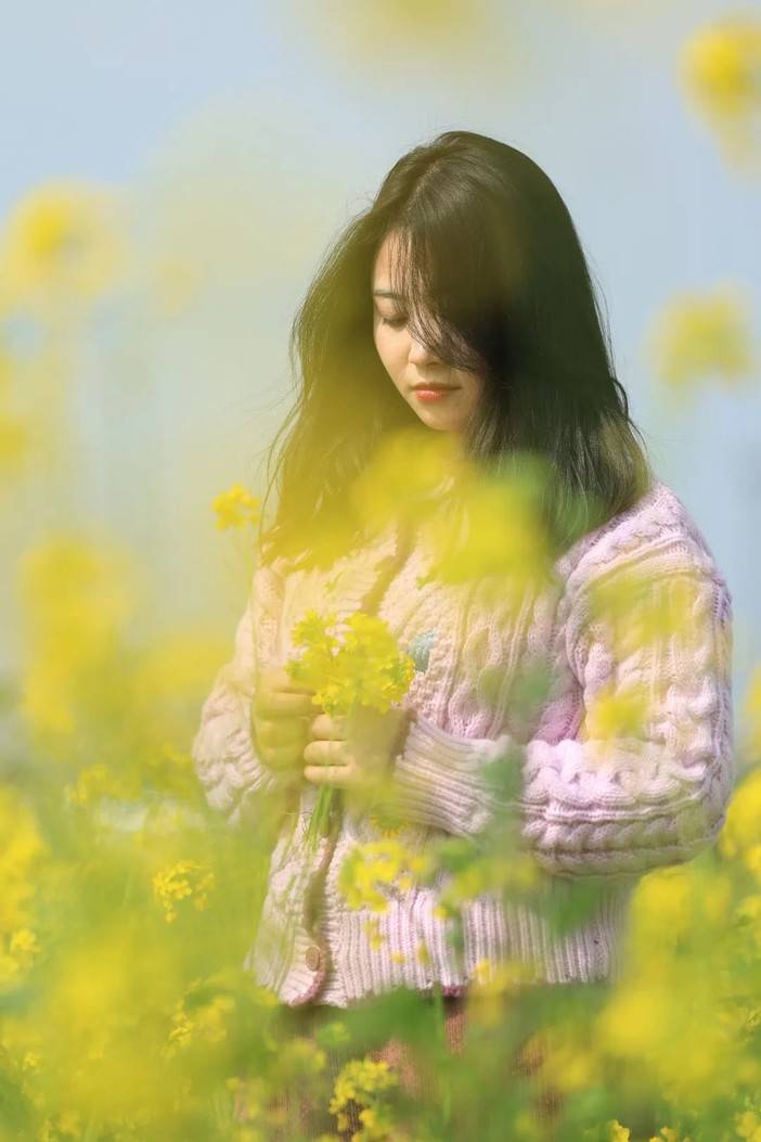 在田埂间漫步,袖口不小心扫过花田,枝头的小蝴蝶飞在衣角上停留又飞走,阳光下的花骨朵分外妖娆,此刻也成了最亮眼的摆拍神器和背景板,让人一秒get好看的照片。