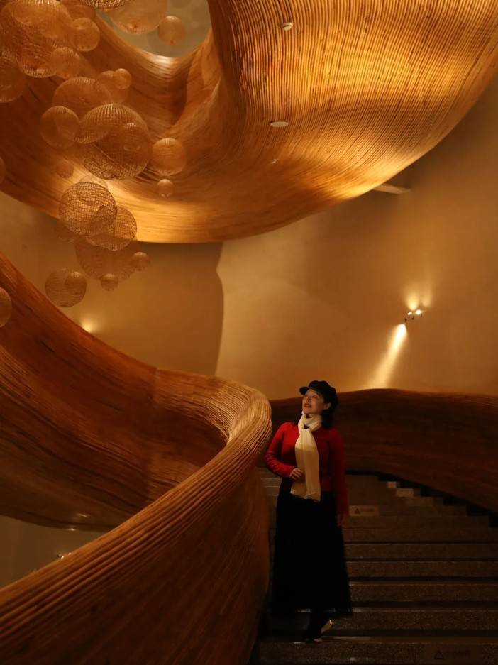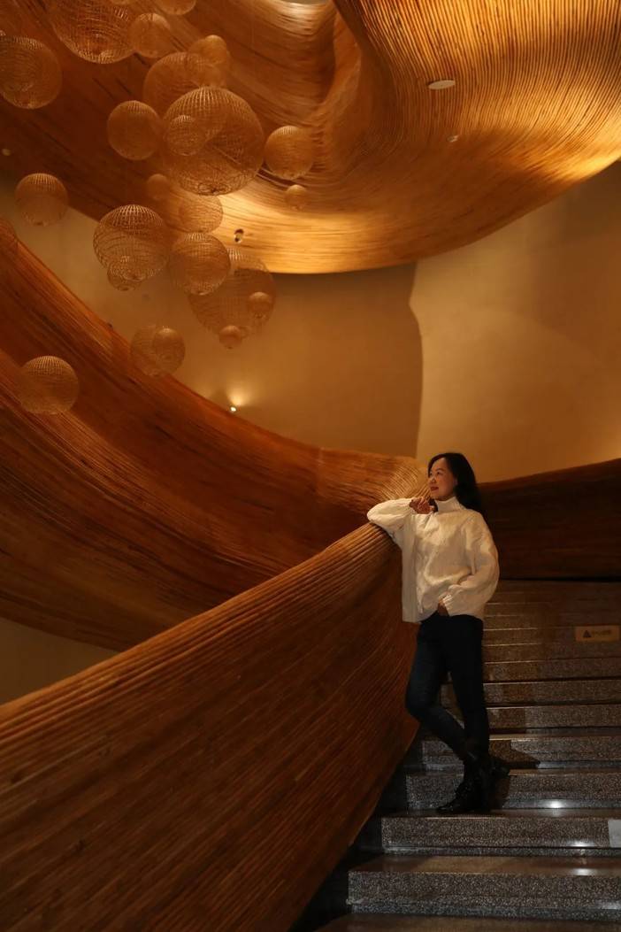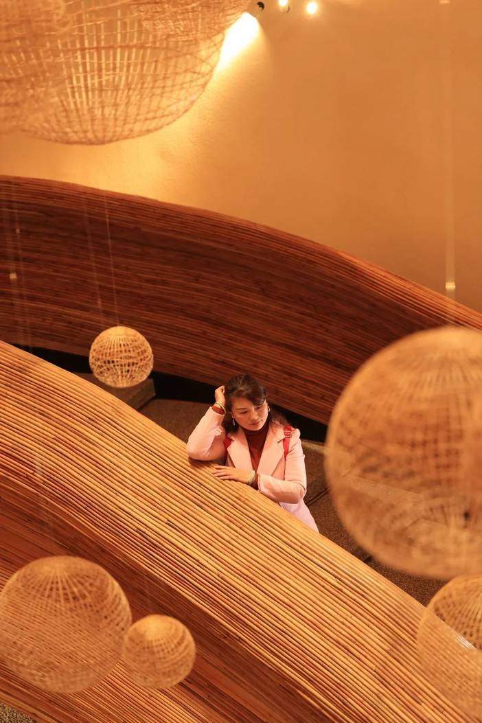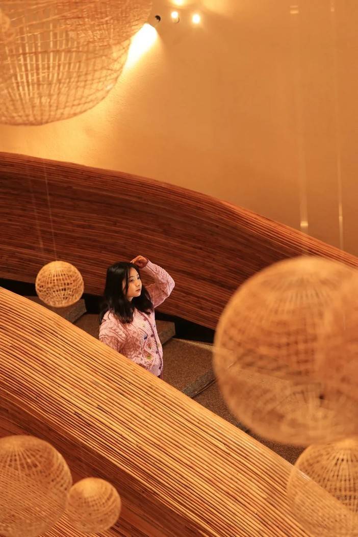 天光从上倾泻而下,此间的青竹风华正茂,颇有茂林修竹的意味,简约的白色旋梯成了我们拍照的圣地,把着扶手款款而下,优雅的姿态立即被相机捕捉。