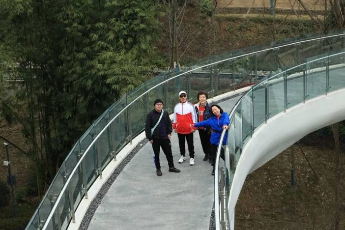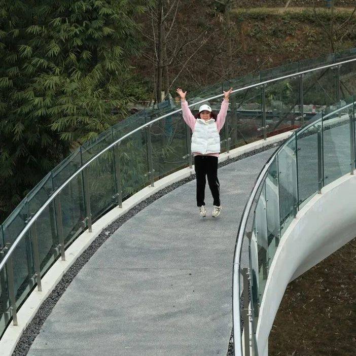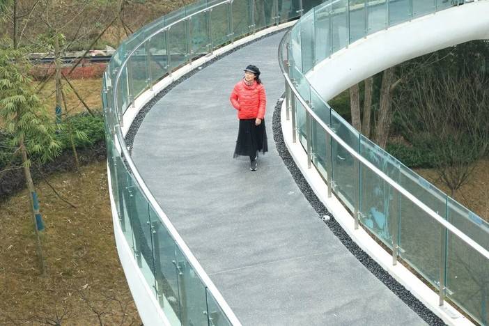 户外的观景台更是宽敞宏大,踏上玻璃廊桥一步步向上,顺滑的曲线很适合构图拍照,在高台远眺,只觉得心旷神怡,有一种登临高地的快意。