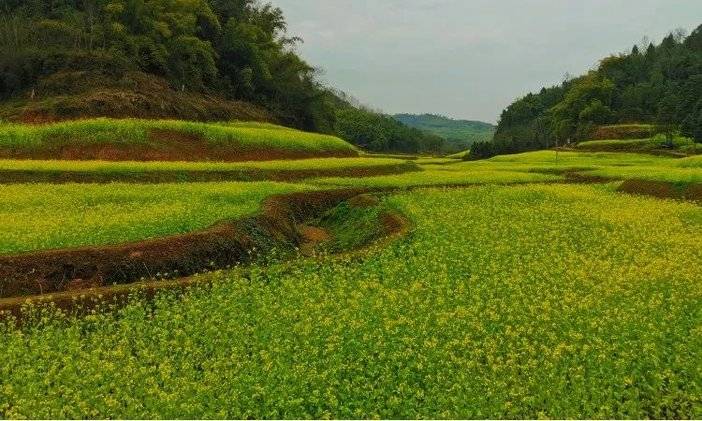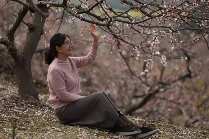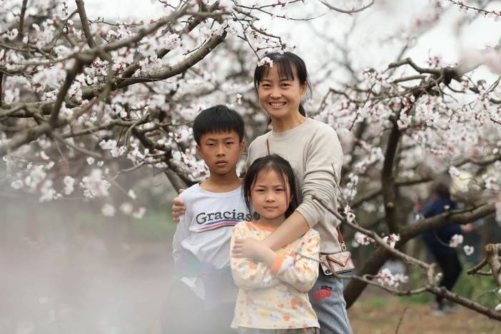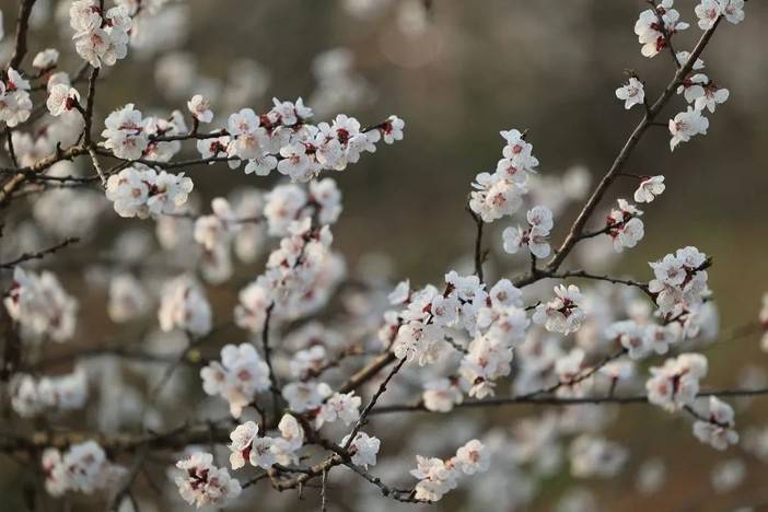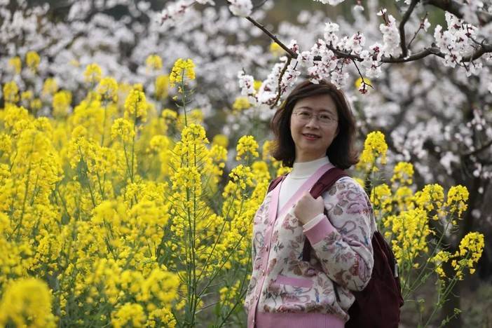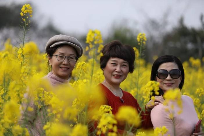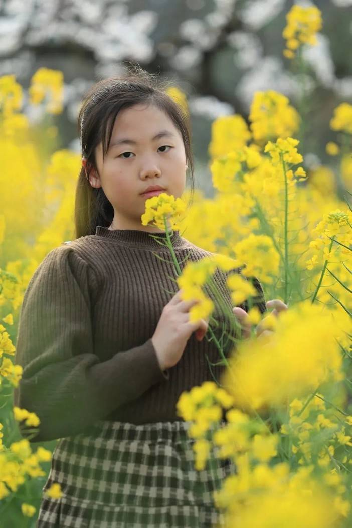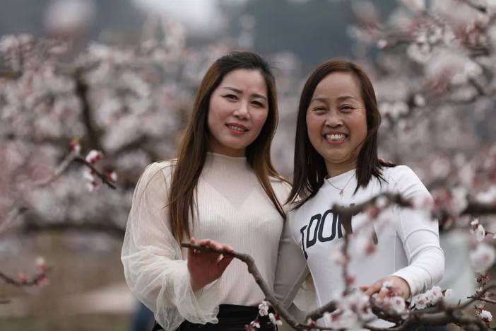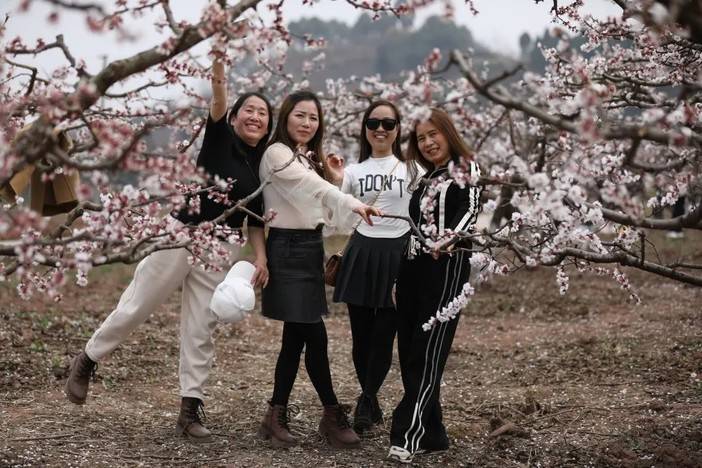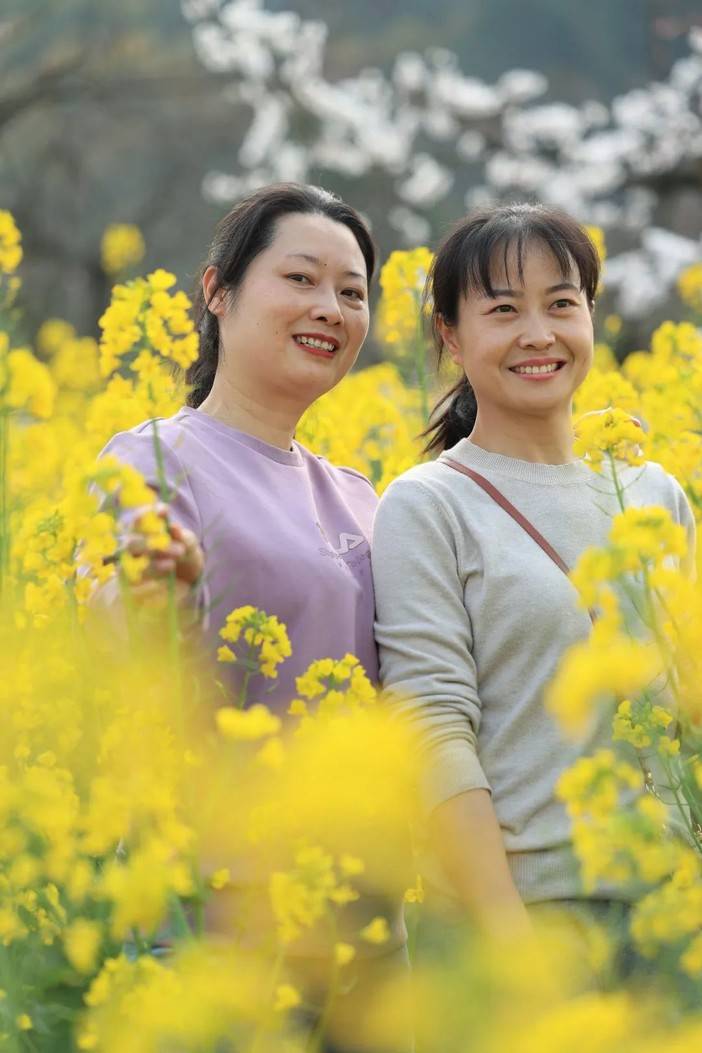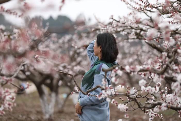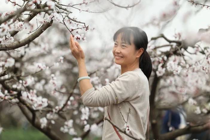 枯树抽了新芽,杂草换上新衣,蓝天白云下绿草如茵,繁盛的杏花在枝头绽放,田野间的油菜花也不遑多让,大片的金黄让万物的颜色更加饱和,在一片花海中,人们喜笑颜开。