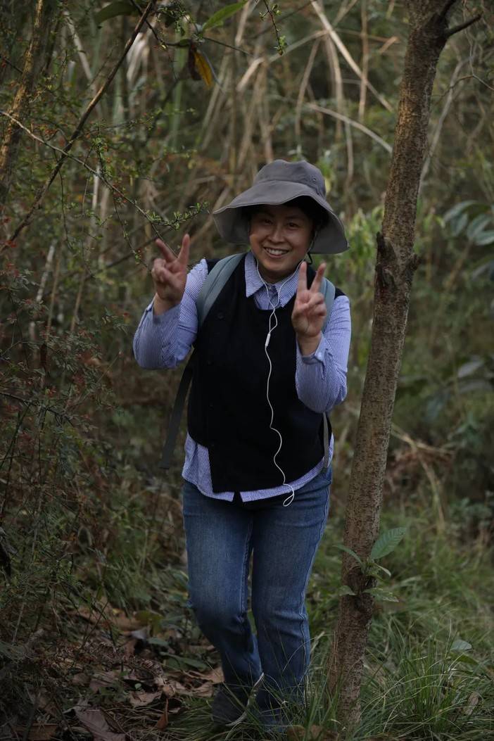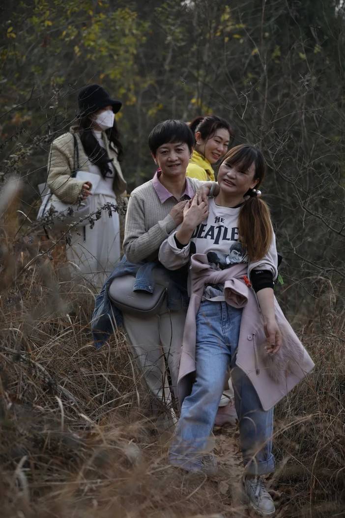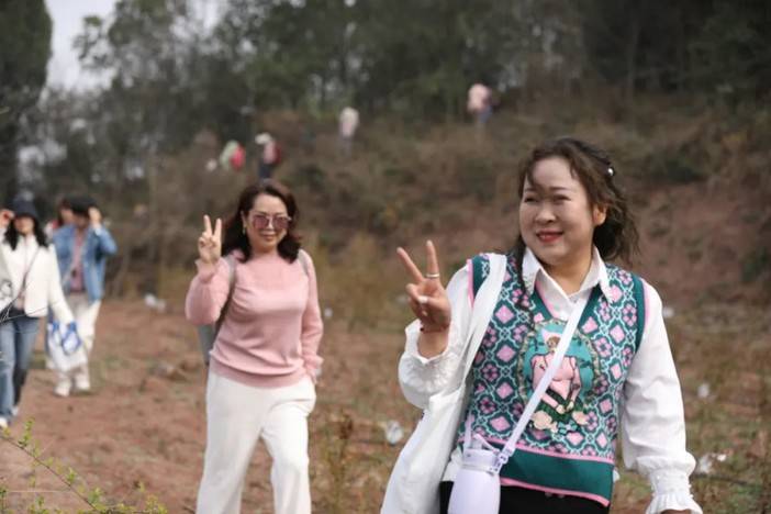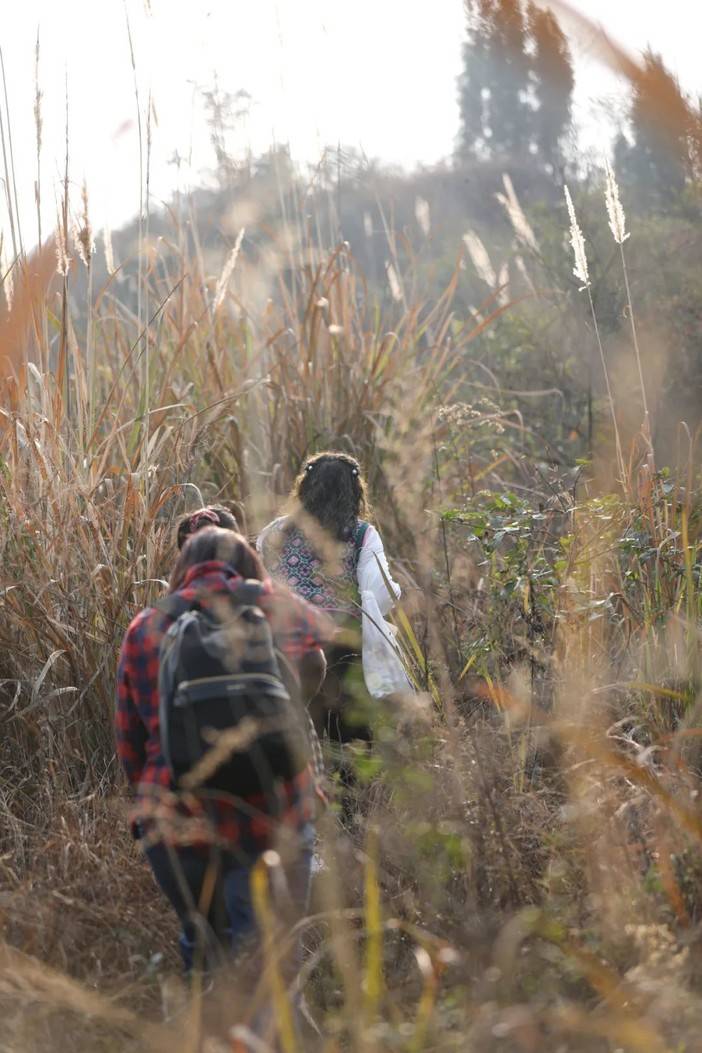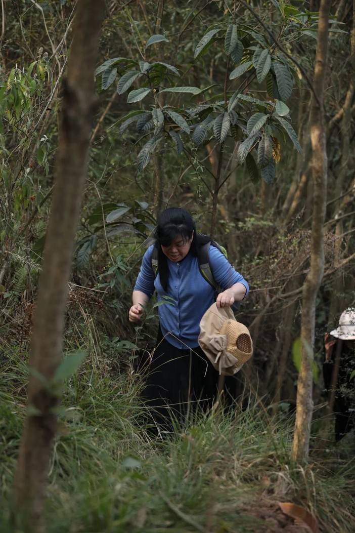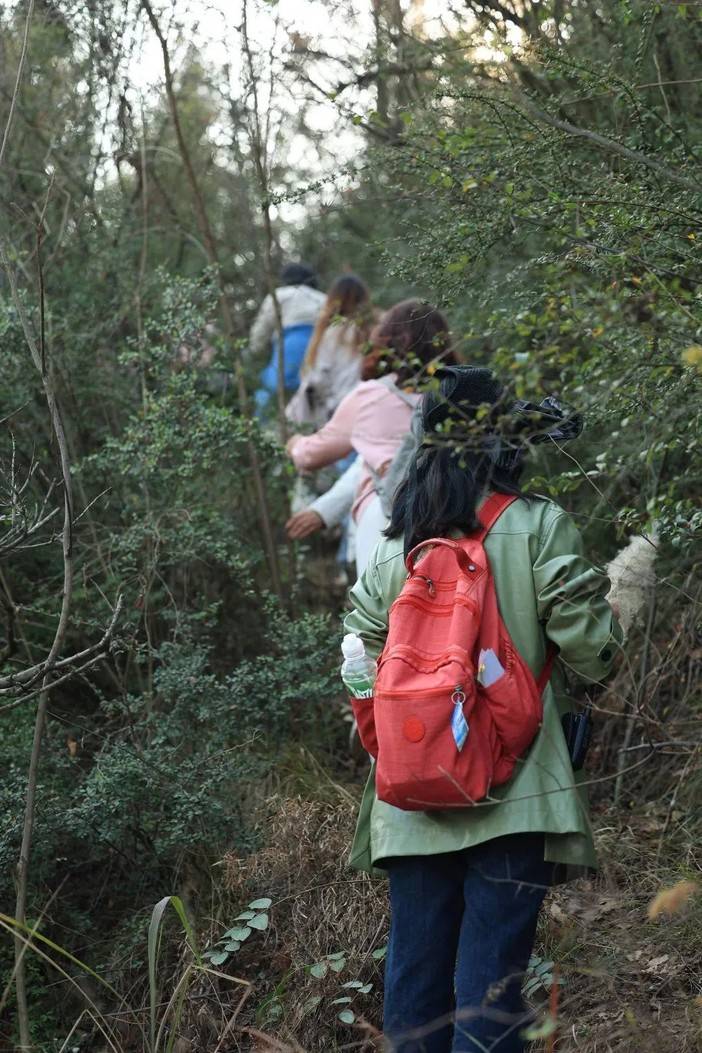 我们穿梭在田埂树林之间,陡峭的坡,我们排列着依次向上,从树林里捡的枯木成了此刻最好的伙伴,无论老少都积极地向上徒步。
