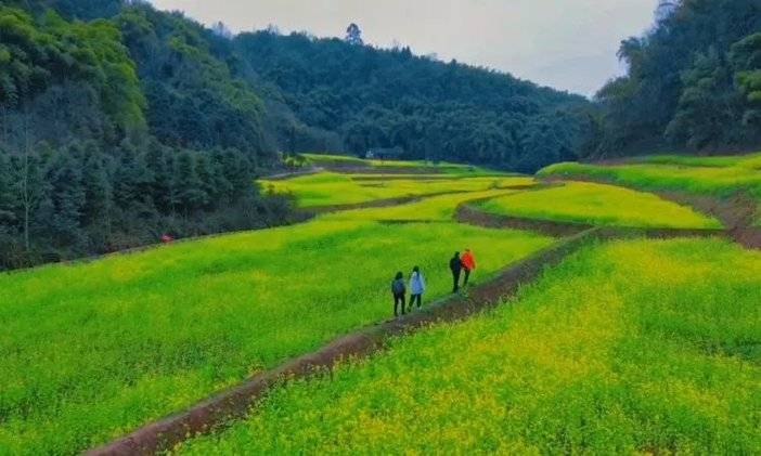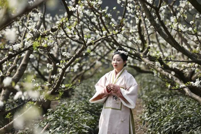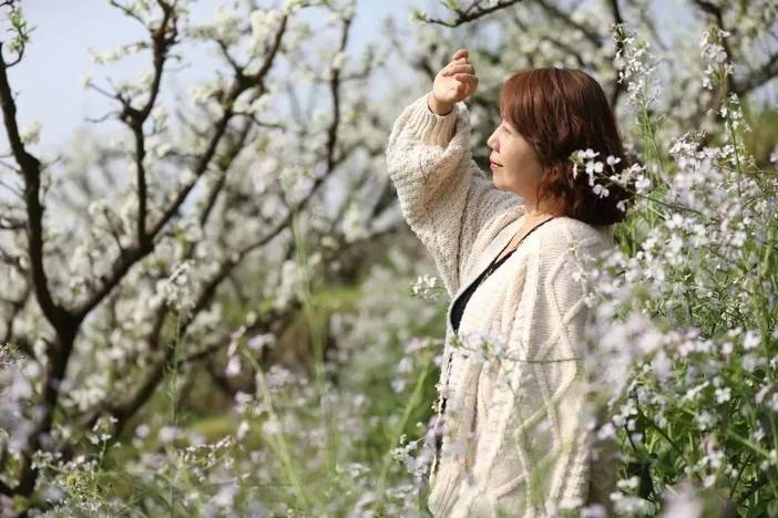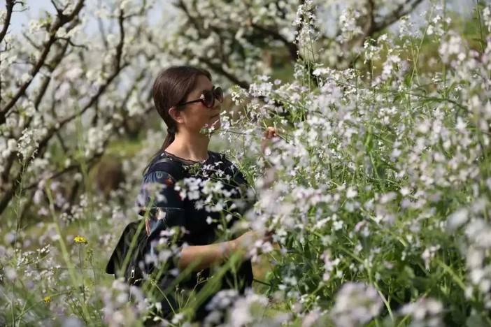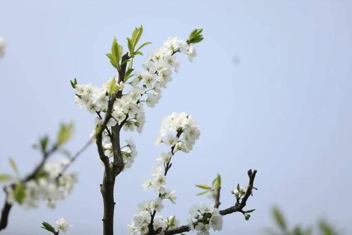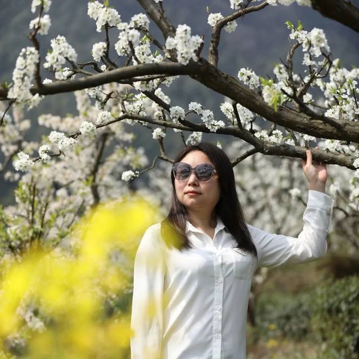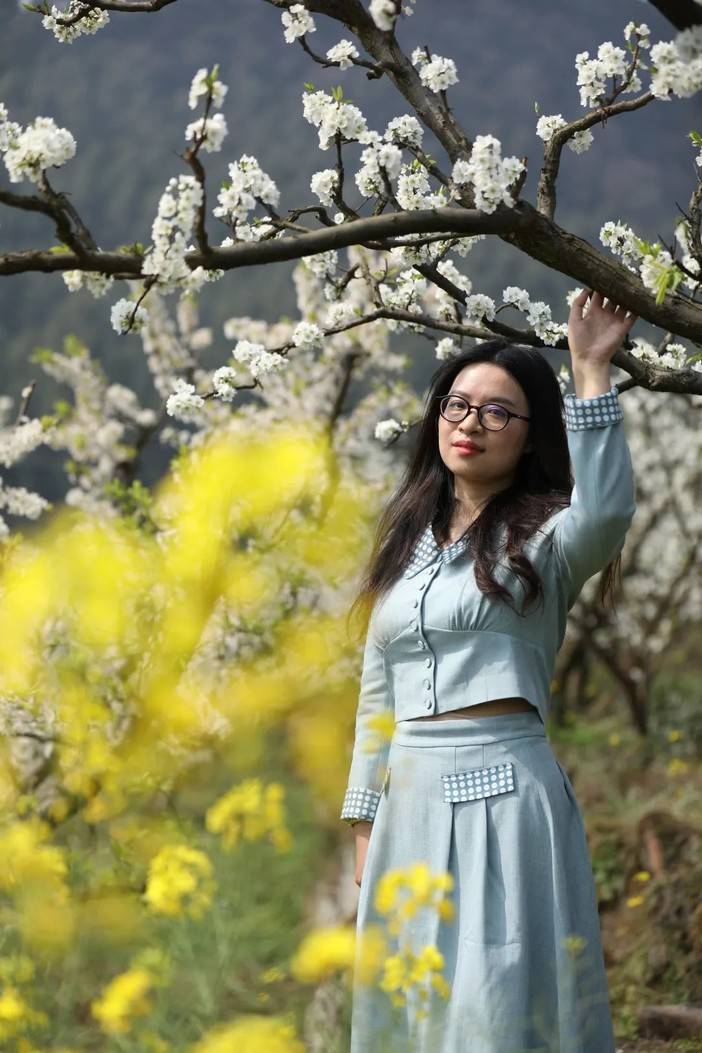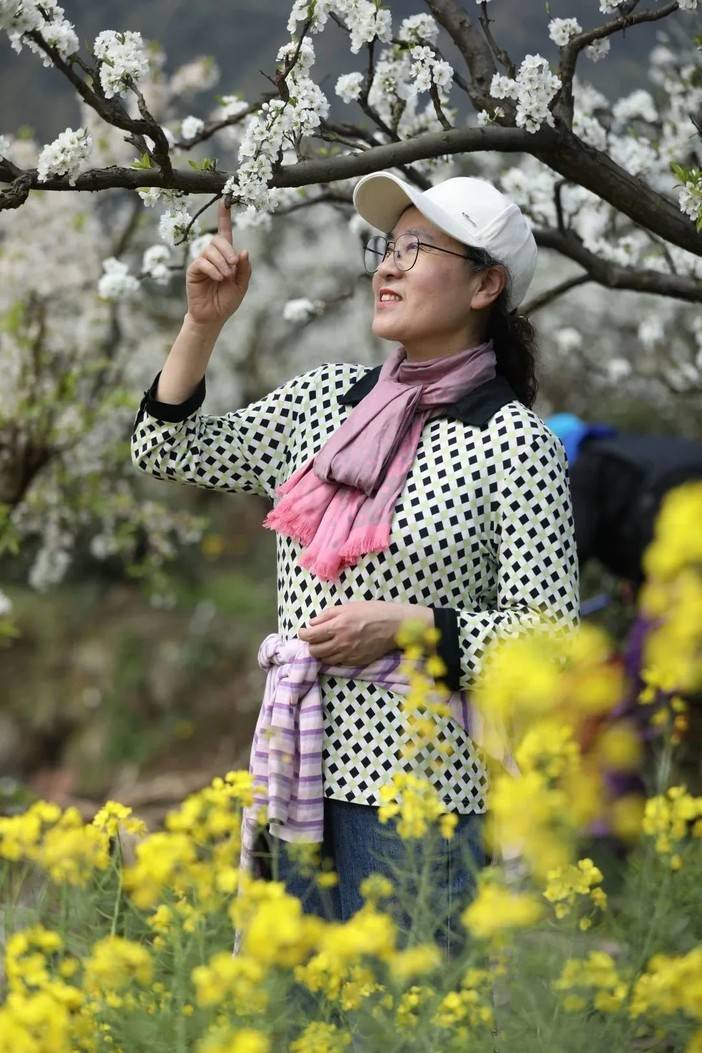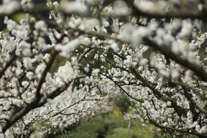 除却粉白的桃花,金黄的油菜花也在李花树下彰显美丽,洁白的李花在灿烂春阳下熠熠生辉,妖娆的枝垭在天空中画出种种轮廓,偶有微风吹过,花瓣在空中飞舞、跳跃。