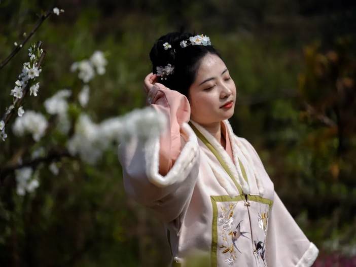 身着一身汉服行走其间,远方青瓦土墙的茅草屋仿佛将人一下带回桃花源里与世隔绝的避世田园生活,清香环绕在鼻尖,耳边是清幽的风声,幸福古村就藏于此间。