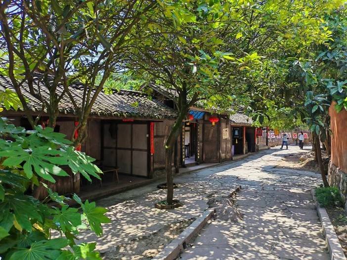 红灯笼高挂,初夏的太阳带着吹来燥热的风。树影婆娑,长街古道边是韵味深远的民国建筑,飞檐画廊,茶铺酒肆,将人一下拉回百年之前。