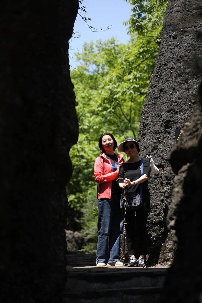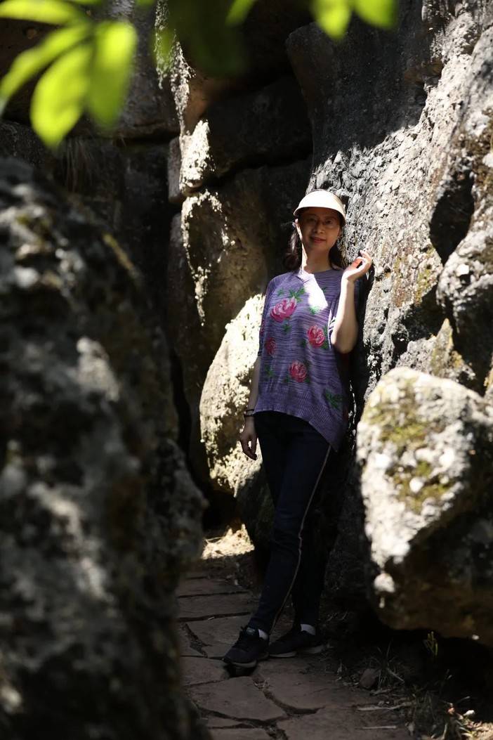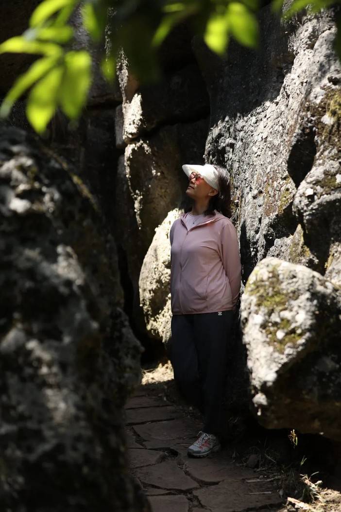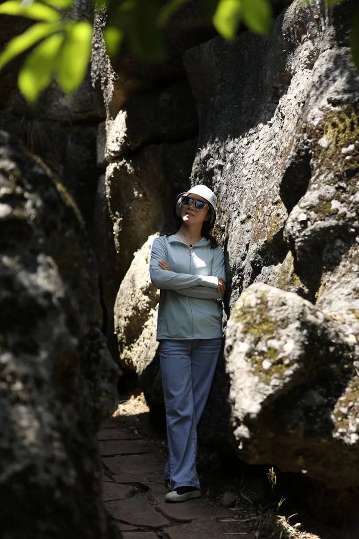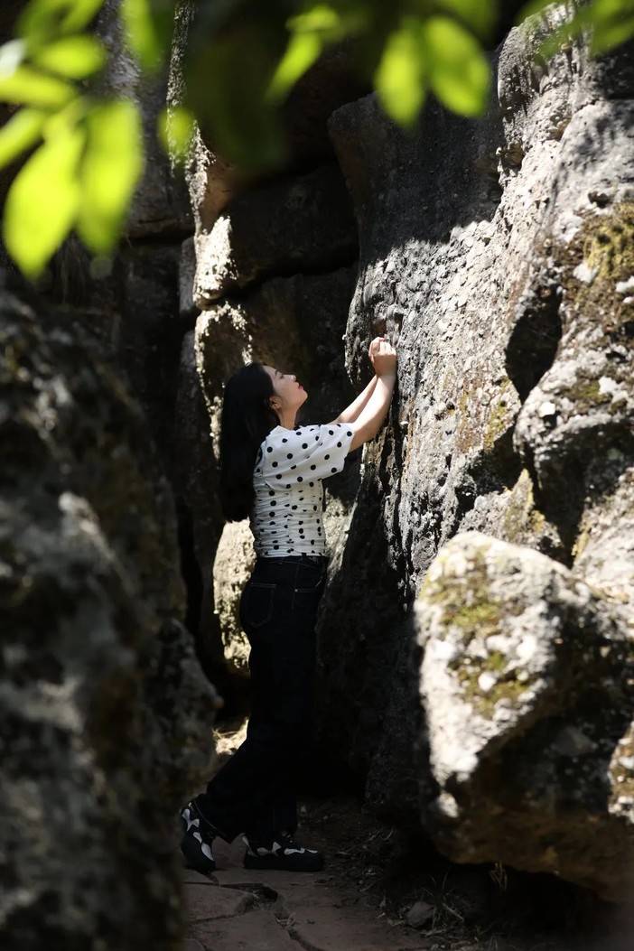 蓝天和青山岩石的适配度毋庸置疑是很高的,燥热的温度被坚硬的岩壁消解,狭长的甬道将身躯完全包裹,光影错落中的舒适,让人回味。