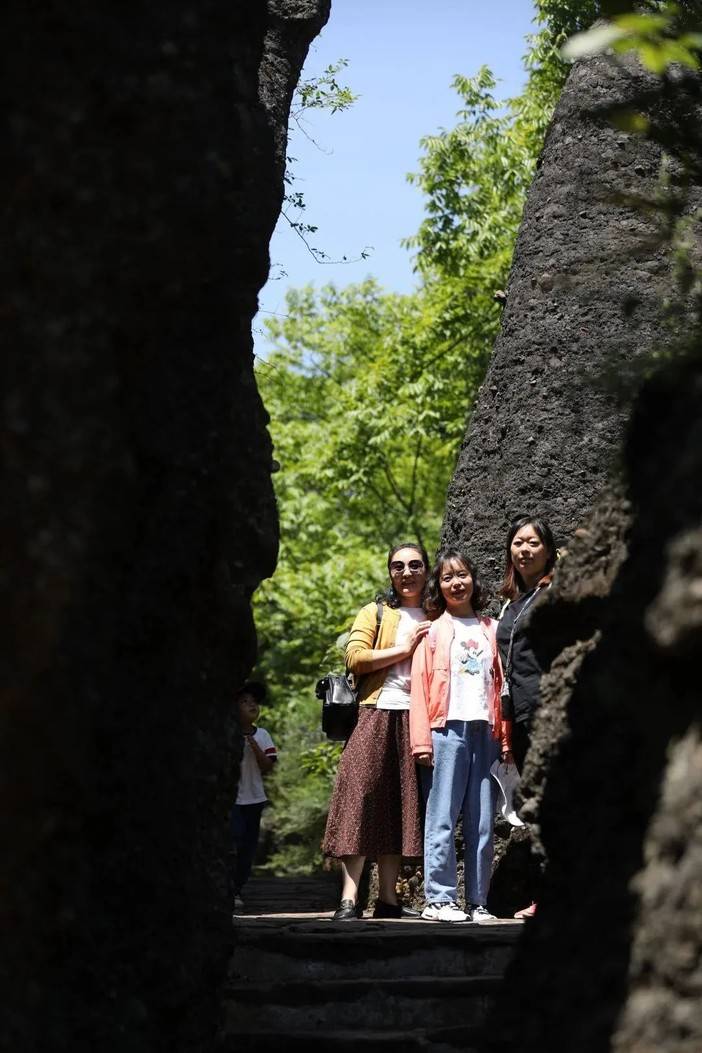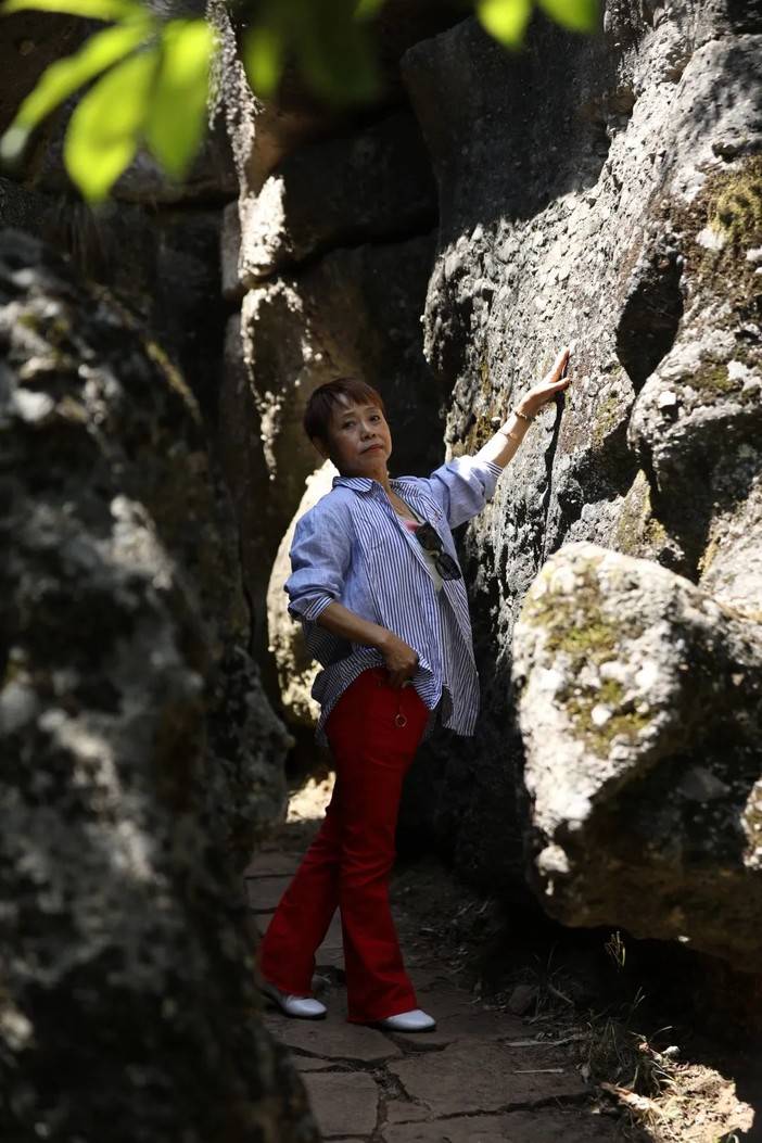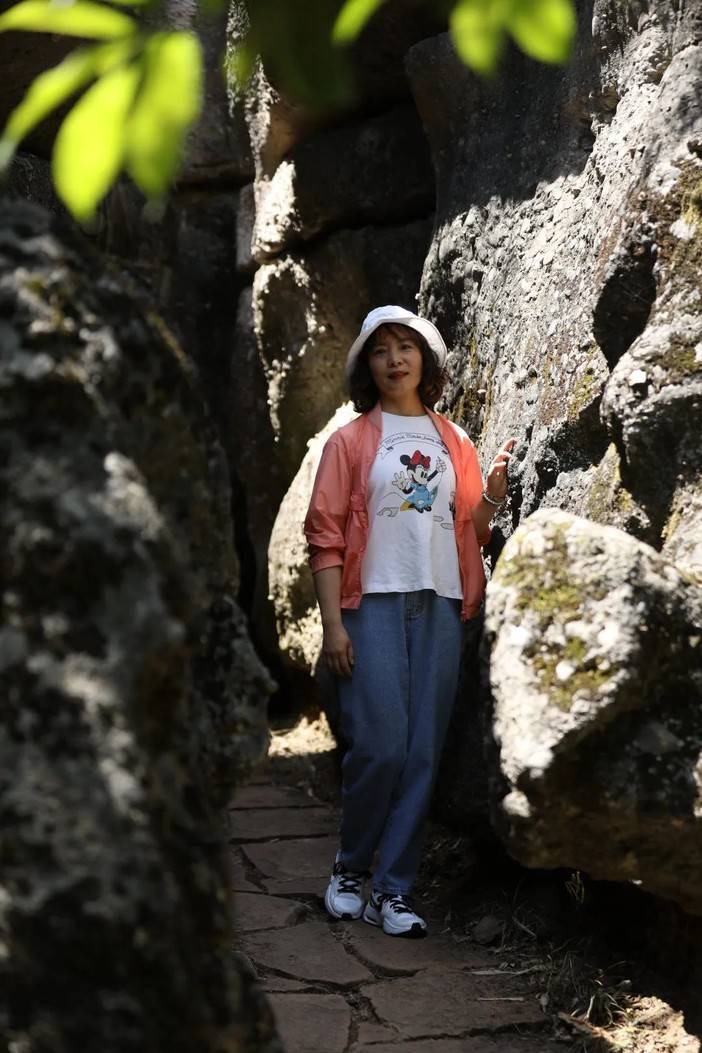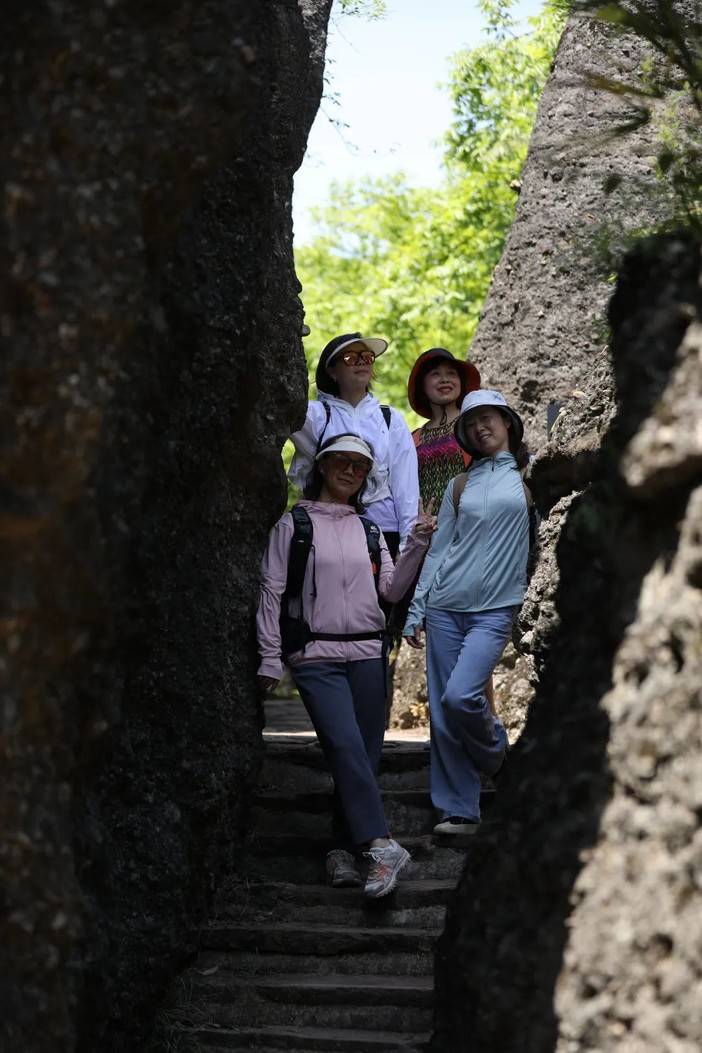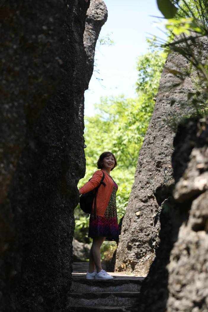 蓝天和青山岩石的适配度毋庸置疑是很高的,燥热的温度被坚硬的岩壁消解,狭长的甬道将身躯完全包裹,光影错落中的舒适,让人回味。