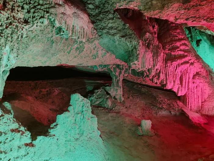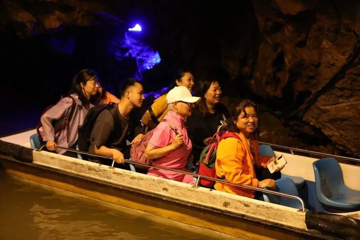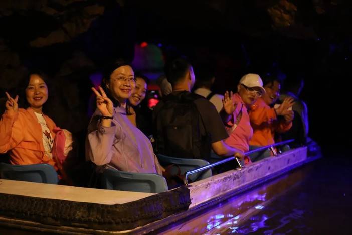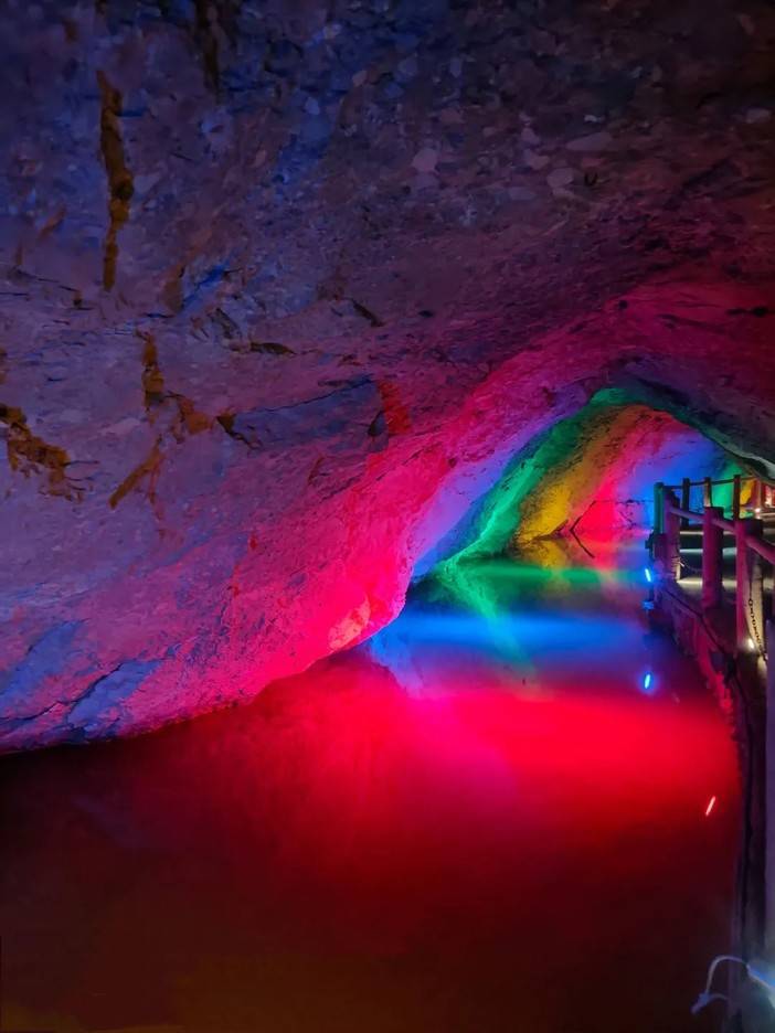 五彩斑斓的溶洞中更是清凉,游船趁着水流带我们体验了一波“峰回路转”“柳暗花明”,哗哗的水流让人身心舒畅,溶洞里的体感温度真的超级舒服~