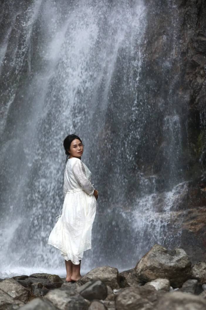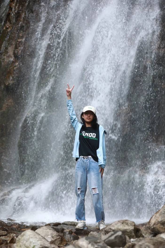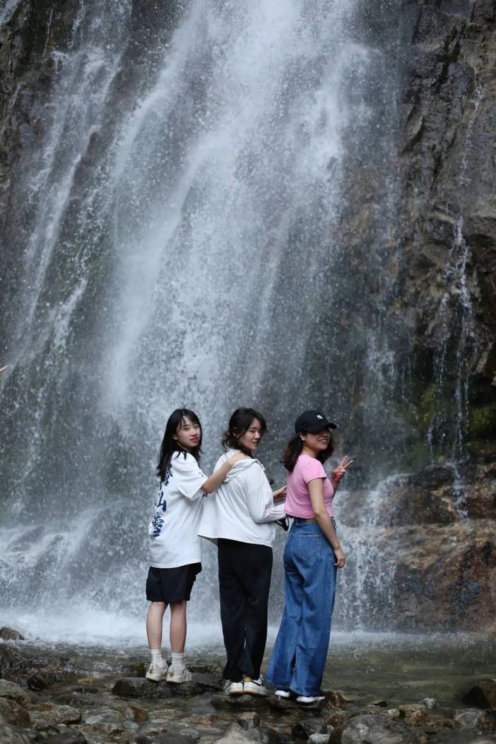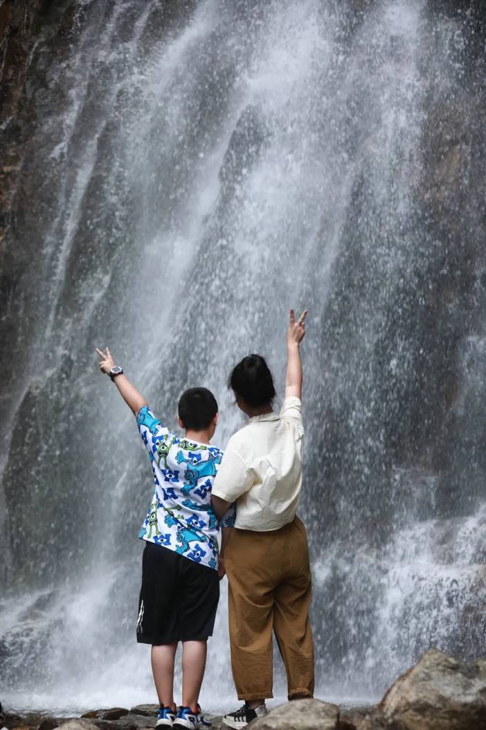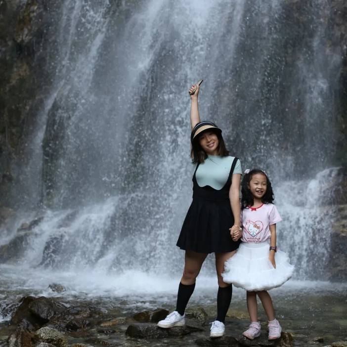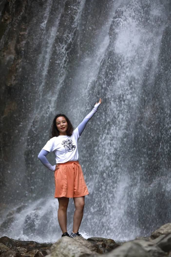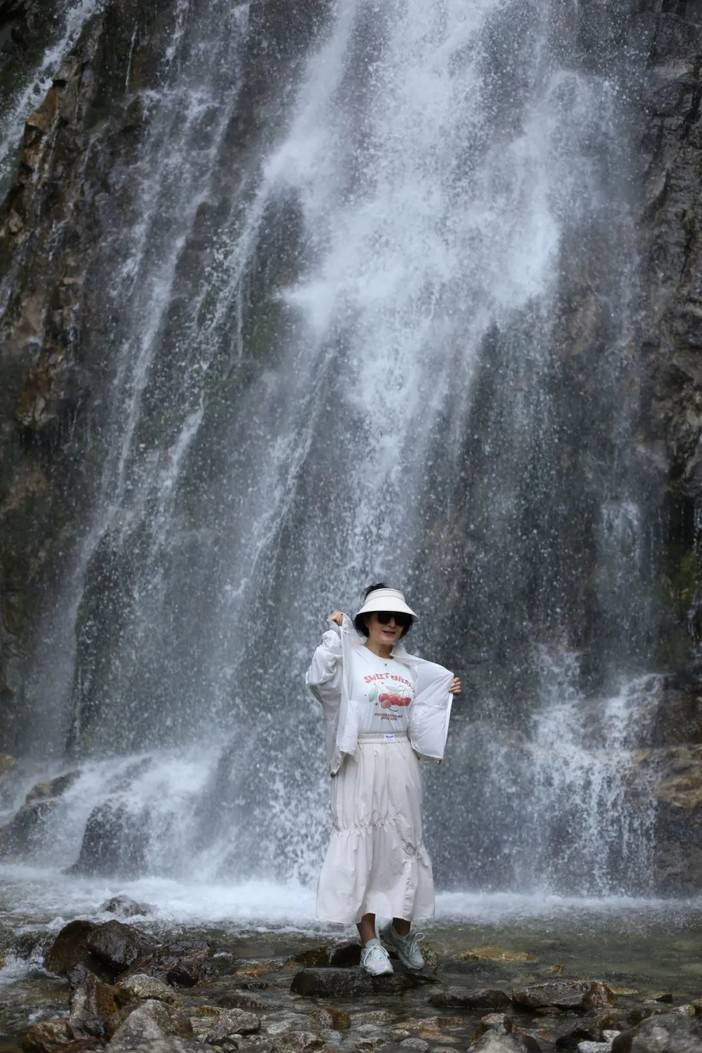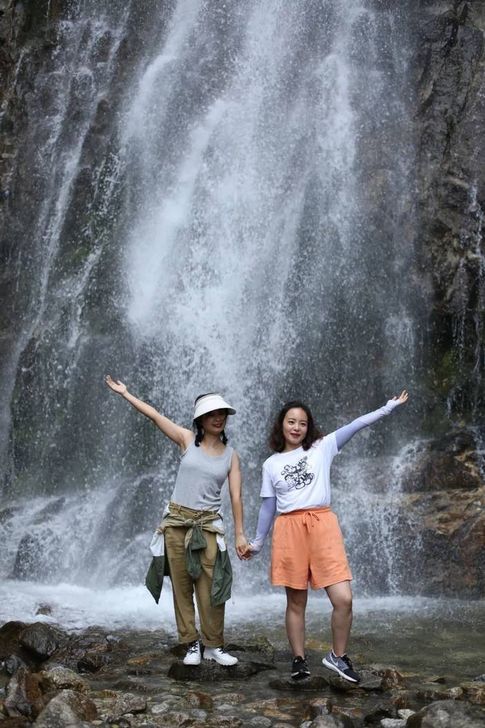 珠帘落九天就是眼前这幅景象了,高处奔腾而下的河水撞击岩壁,蹦成了许多小水珠,让人一下想到了“大珠小珠落玉盘”的清脆感,脚边的水潭也有小石潭记中的感觉...