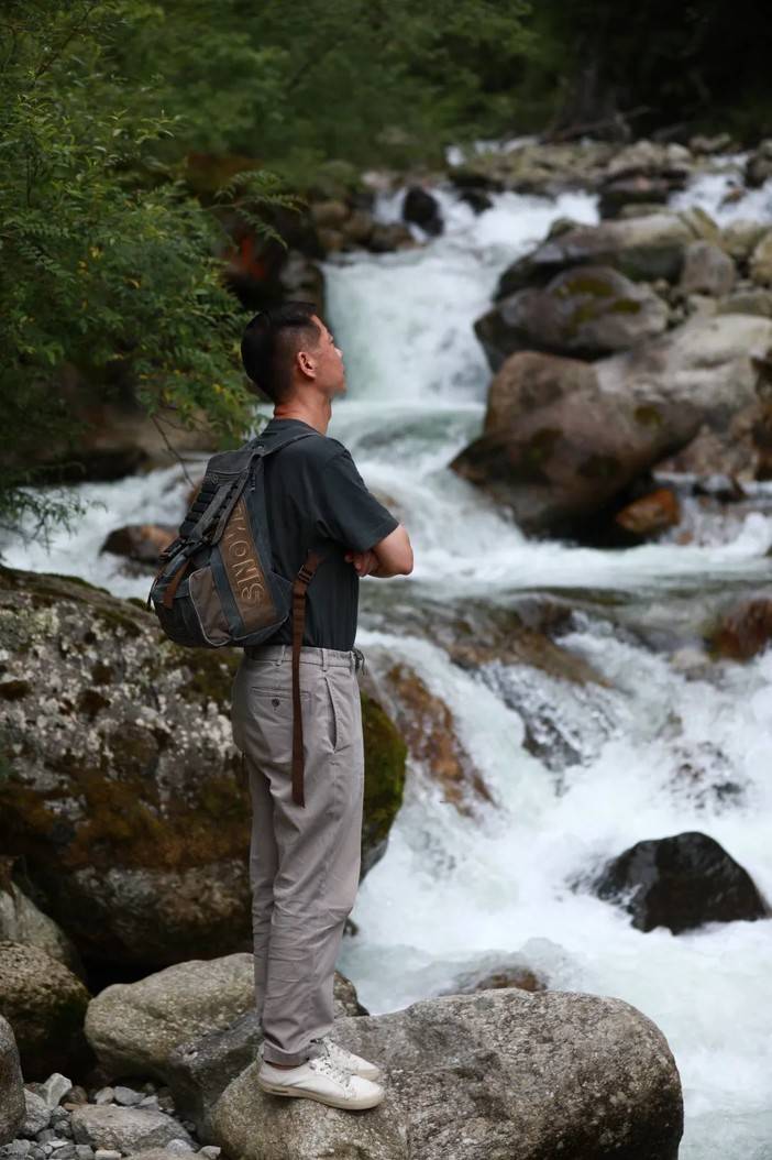 我们涉水而上,跨过红石滩后的水流越发湍急,越是向上,河石越大,河床也越来越陡峭,我们一路往河沟深处而去,水流坠入水潭的声音逐渐清晰。