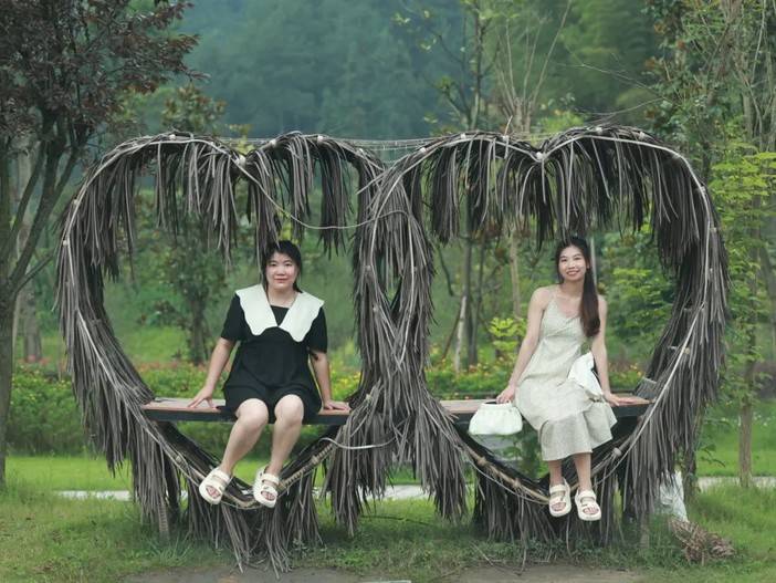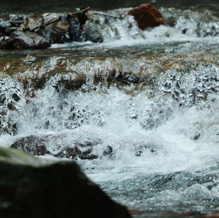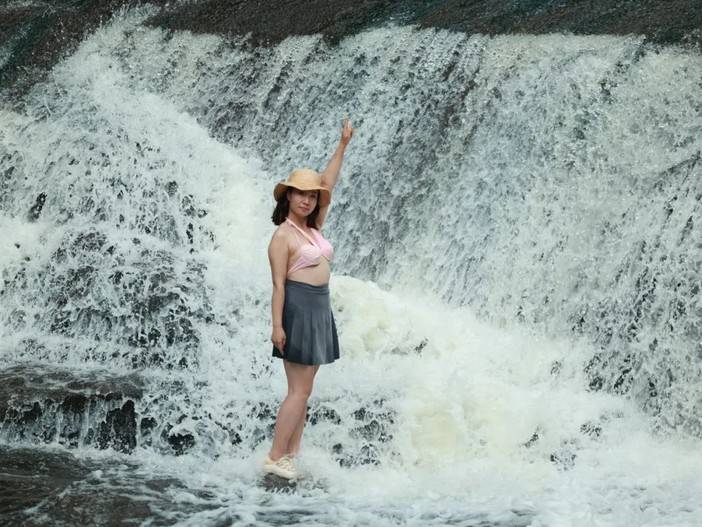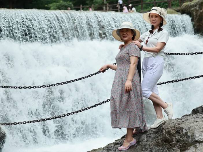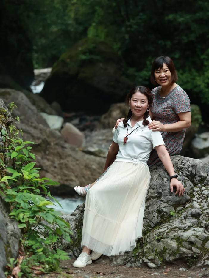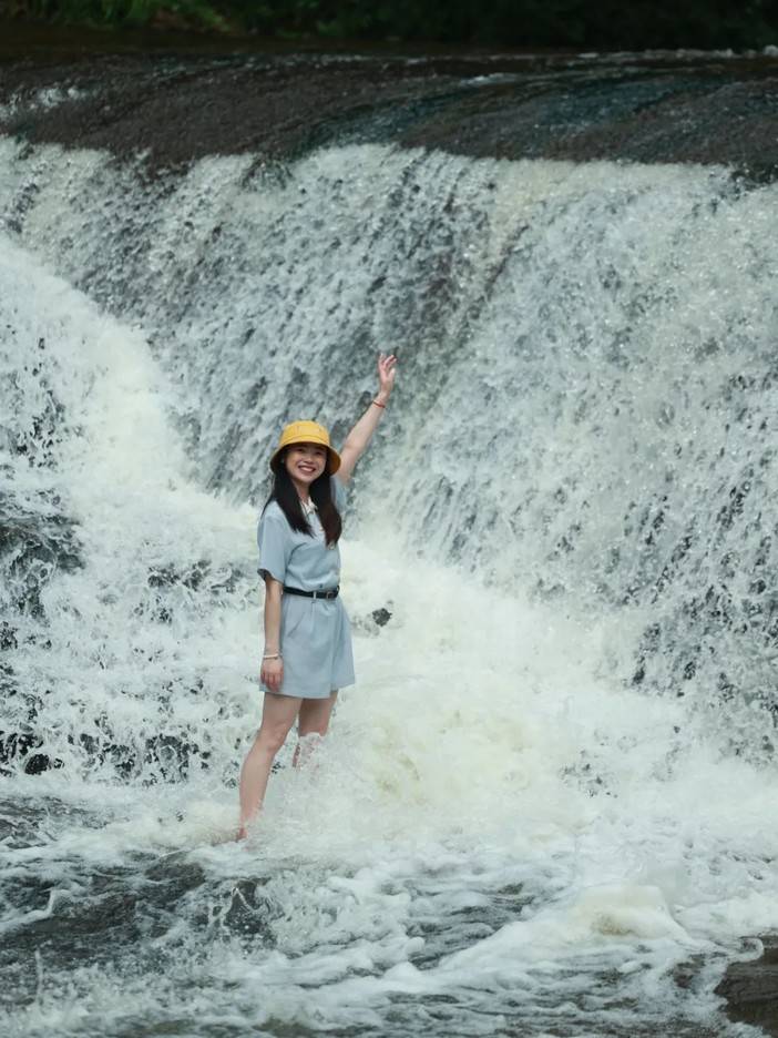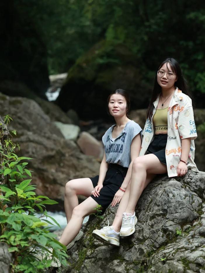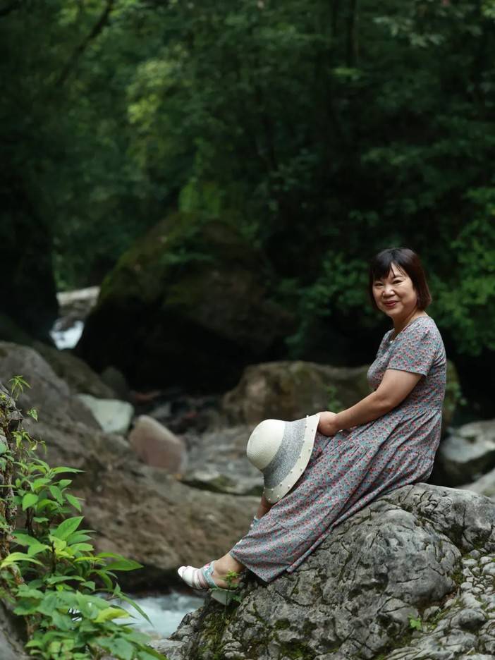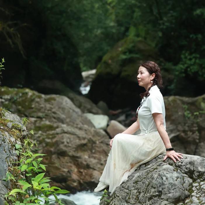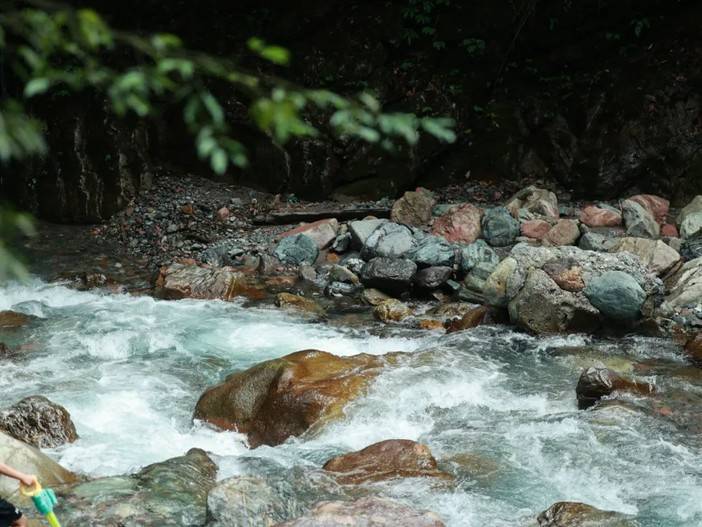 深浅不一的河石井然有序,山间蝉噪水鸣,热闹非凡。随意坐下摆个姿势,就能借助光影与布景快速出片,耳边是水流撞击河石形成的叮咚声,听着内心只觉畅意非凡。