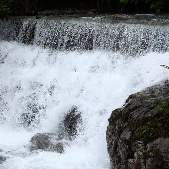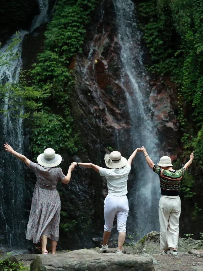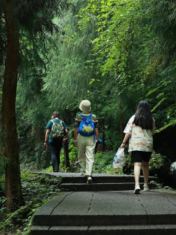 平均气温不超过25℃的大飞水不仅有水,还有森林可以徒步,徒步之中我们还遇到了猴群,走过摇摇晃晃的吊桥,我们逐步往森林深处走去,满满的负氧离子让人身心舒畅。
