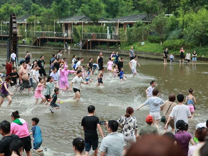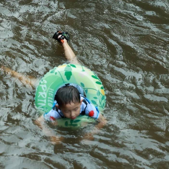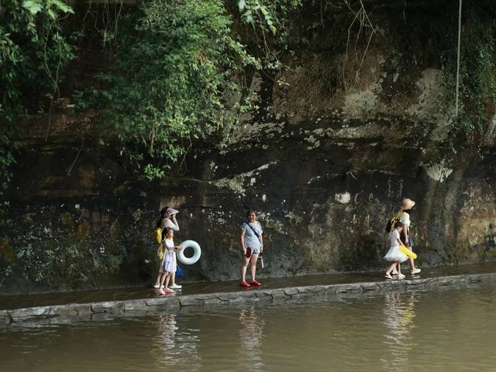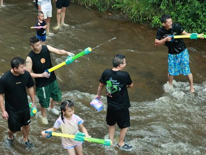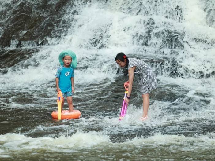 这里的戏水战场是真的能够任人们自由玩耍的,无论大人小孩,拿着水枪等工具在石板河跑来跑去都不用担心河石滑脚或者青苔打滑,是个加强亲子关系的好机会。