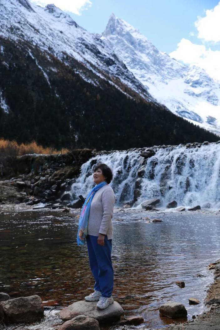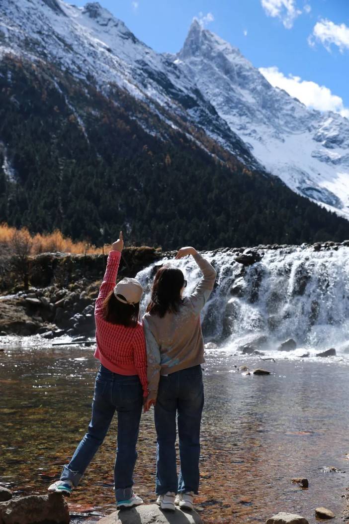 夏日带来清凉的小瀑布在雪山下哗哗作响,山尖白雪、飞瀑水雾、清澈浅滩,水的三种形态在一张图中呈现,这便是徒步自然难得的乐趣,此行真让人流连忘返...