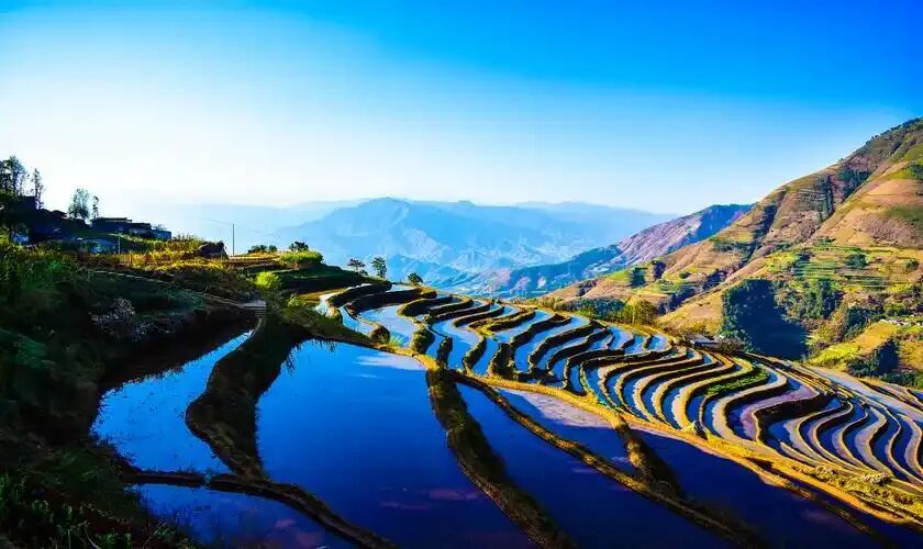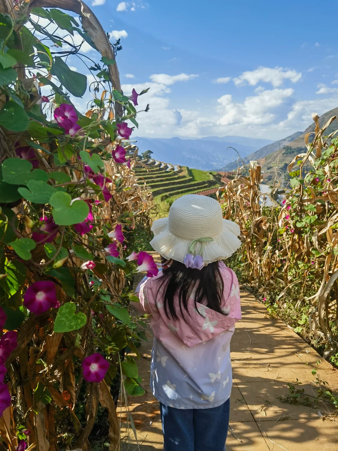 早上集合后前往新山梯田。沿着观景步道轻松漫步,看晨光洒在层层梯田,云雾在山腰间流动。可多停留拍照、坐在田埂边感受风声与鸟鸣。中午在当地农家院用餐,品尝简单、清爽的当地食材。下午继续从容漫游梯田区,选择短距离小循环步道,不用走累,只需享受阳光与乡野景致。当阳光变得柔和时返回县城。晚上自由活动,可在河边散步或在酒店安静休息。