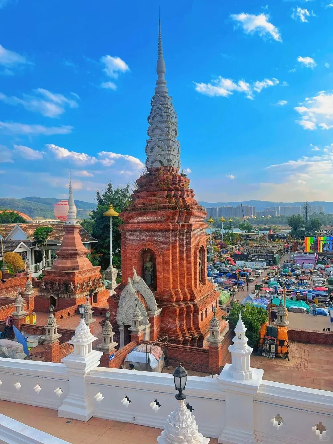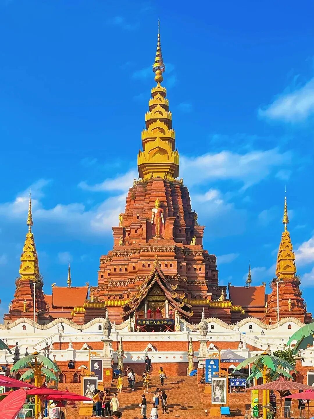 西双版纳大金塔位于景洪市告庄西双景景区内,是傣族文化与南传佛教风格的代表性建筑。以东南亚佛塔建筑为灵感,融合傣泰艺术纹饰、金色浮雕与多层塔檐,象征吉祥与守护。被誉为“西双版纳地标之一”,也是当地极具人文象征意义的佛教圣境。