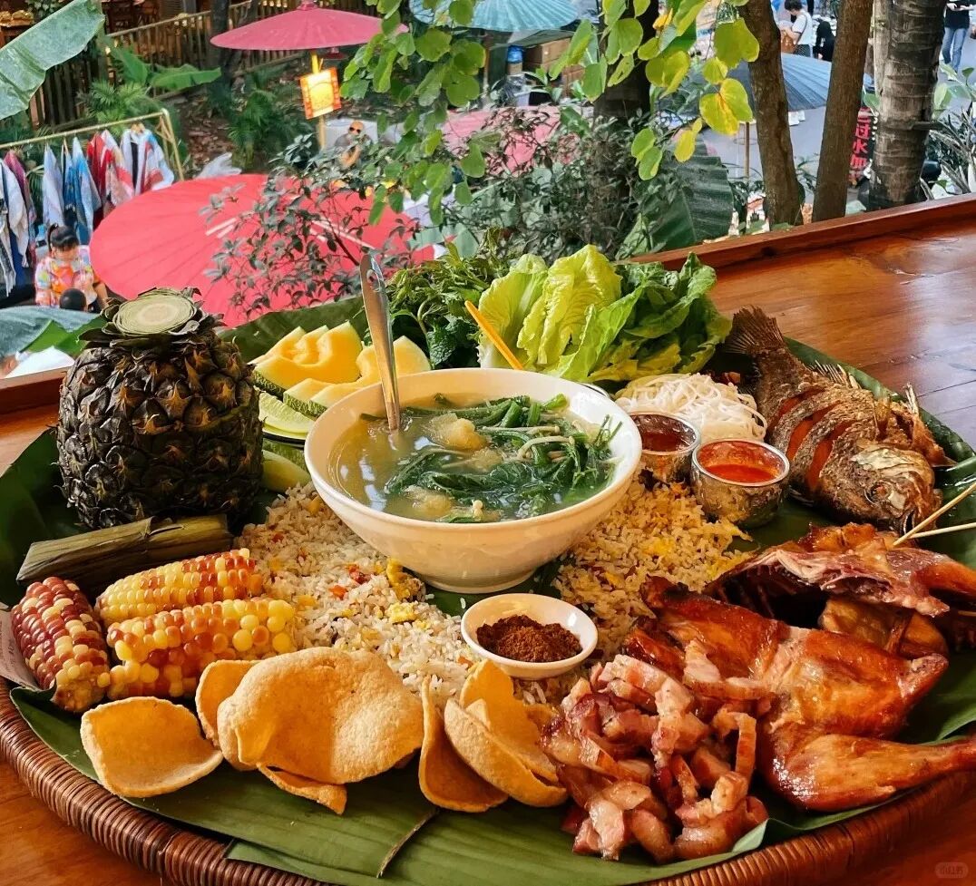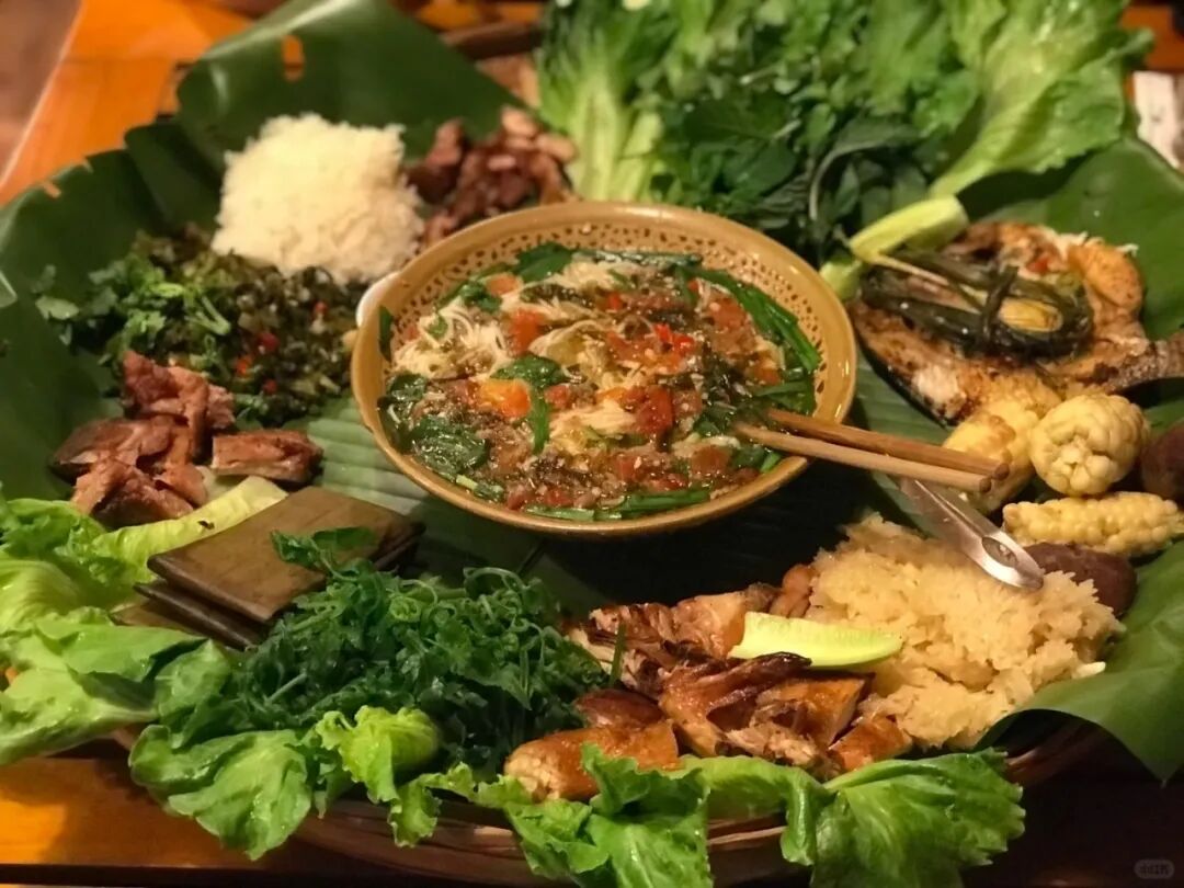 西双版纳美食融合傣族传统与热带风味,酸辣开胃、香料丰富、口感清新自然。傣味烤鱼外焦里嫩,香茅、辣椒与蒜的味道让人回味无穷;竹筒饭将米香与肉香紧紧封存于竹筒中,蒸汽中溢出的香气令人食欲大开;菠萝饭酸甜清爽,带有热带风情;让人在每一口中感受傣族的热情与西双版纳独特的自然风味。