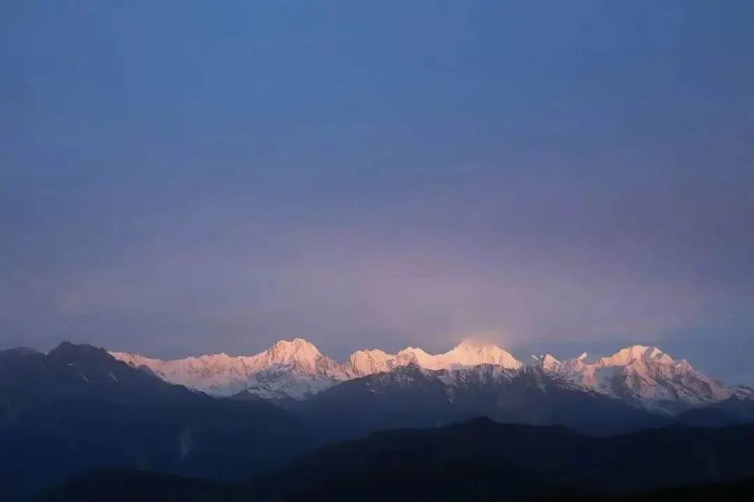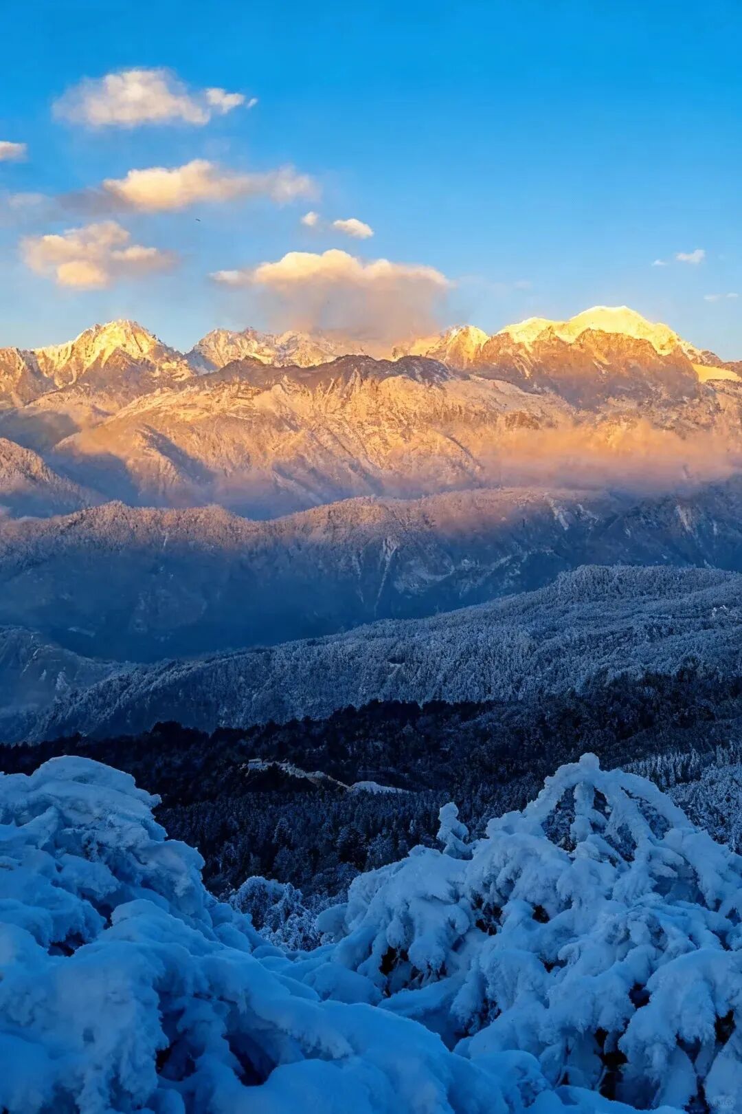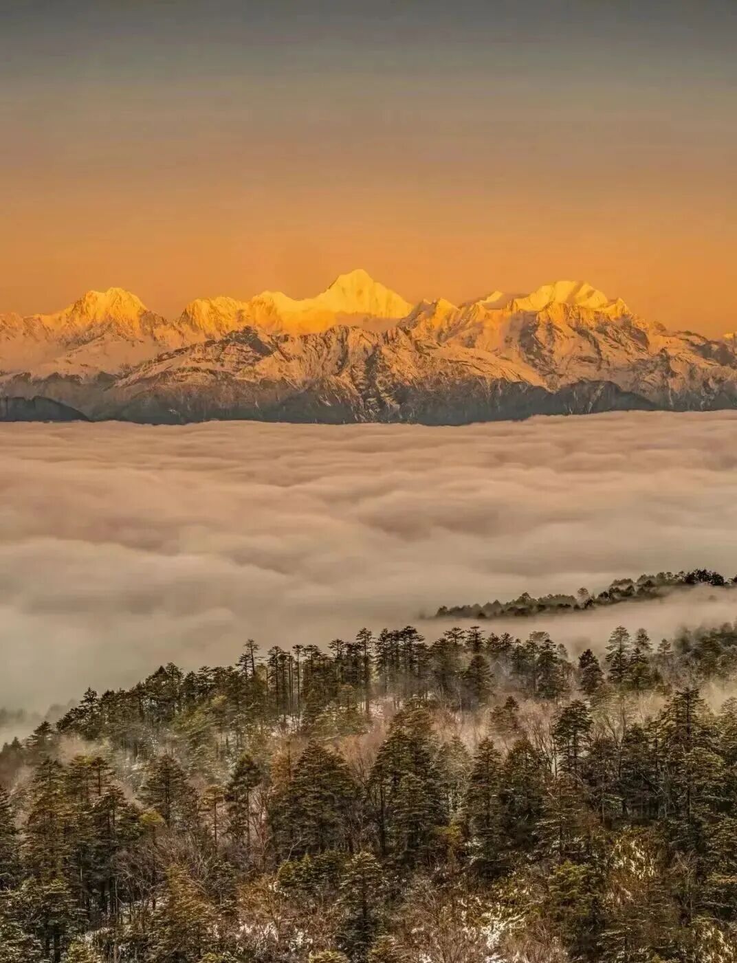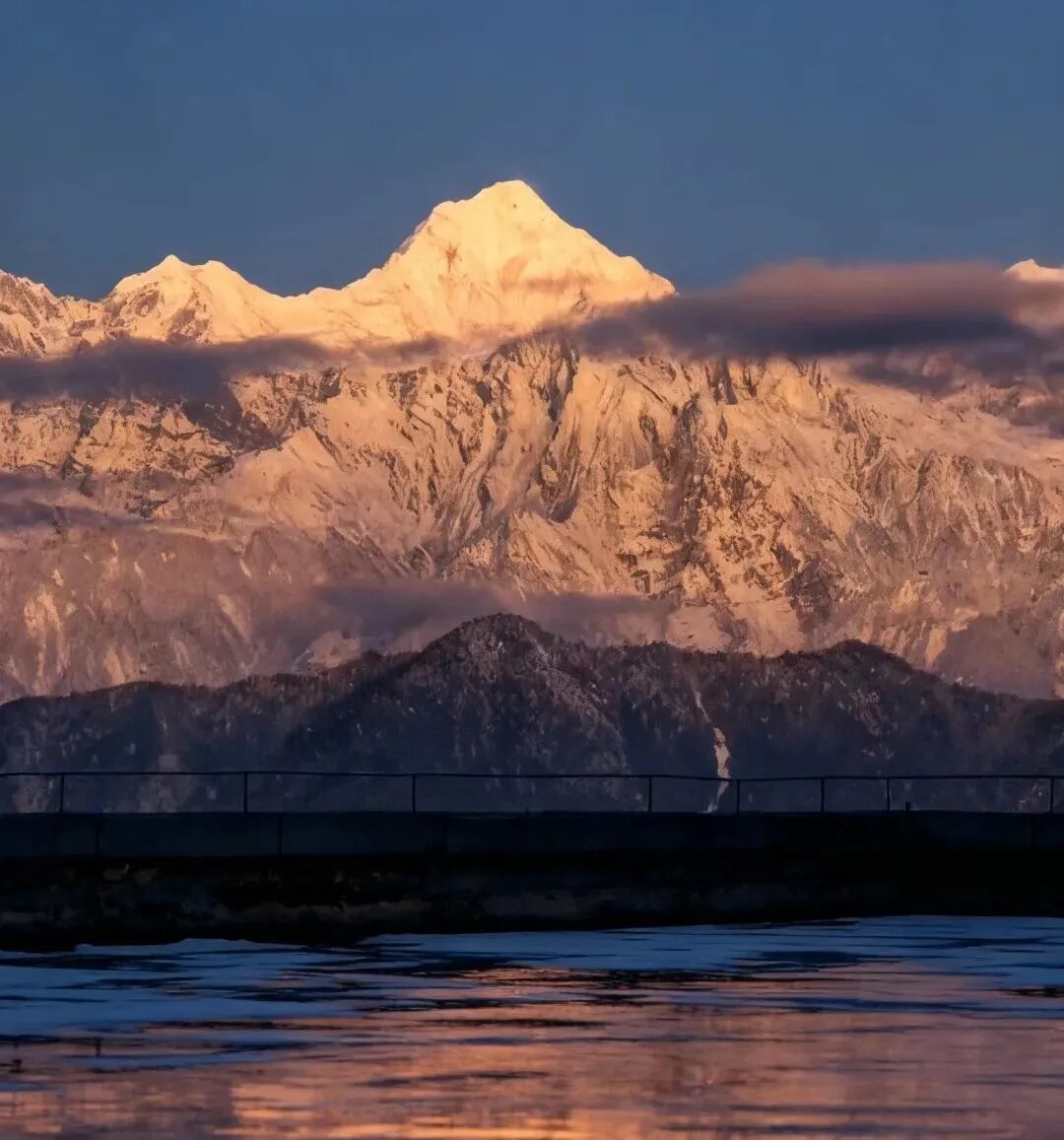 仿佛有人把阳光折成利剑插在川西高原。云海翻涌时,贡嘎像浮于万顷银涛之上,山体与倒影同框,肉眼可见的“日照金山”持续20分钟,被摄影圈誉为“川西藏起的最美阳台”。