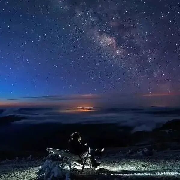 ✦ 经过数小时的攀登,浩瀚的星空在眼前铺展开来,银河横贯天际,星星们像是无数颗钻石,镶嵌在深蓝色的天幕上,闪烁着柔和的光芒。我们仰望星空,心中涌起一种难以言喻的感动。