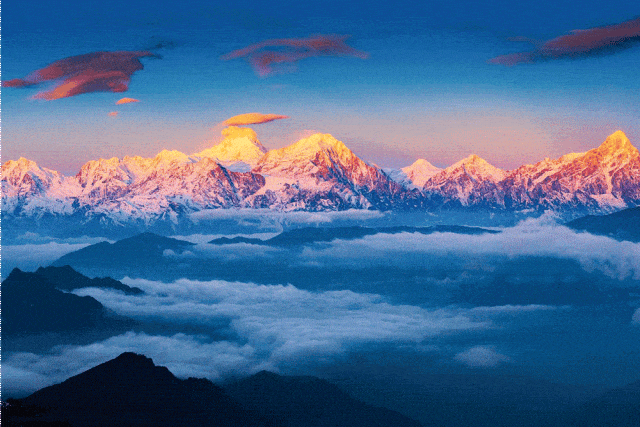 12月的牛背山,占领海拔3666m、北纬30°的制高点,让川西的冷高压与谷底水汽在此相遇,晴空率飙到80%,太阳跳出地平线那10分钟,贡嘎主峰被染成玫瑰金色。